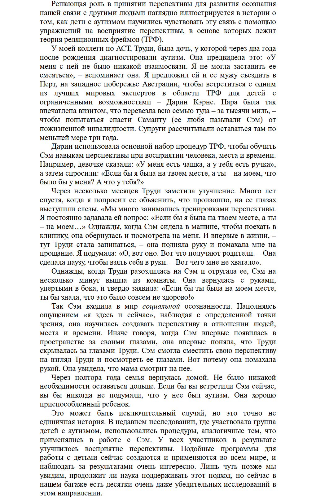 А, еще вот, Про перспективу в ACT есть забавные упражнения задачки. Они разрабатывались, чтобы у детей аутизм лечить, потому что аутизм проявляется из-за того, что (1) дети не осознают сознания других людей и (2) они не находятся "за своими глазами", т.е. не осознают своё сознание.
