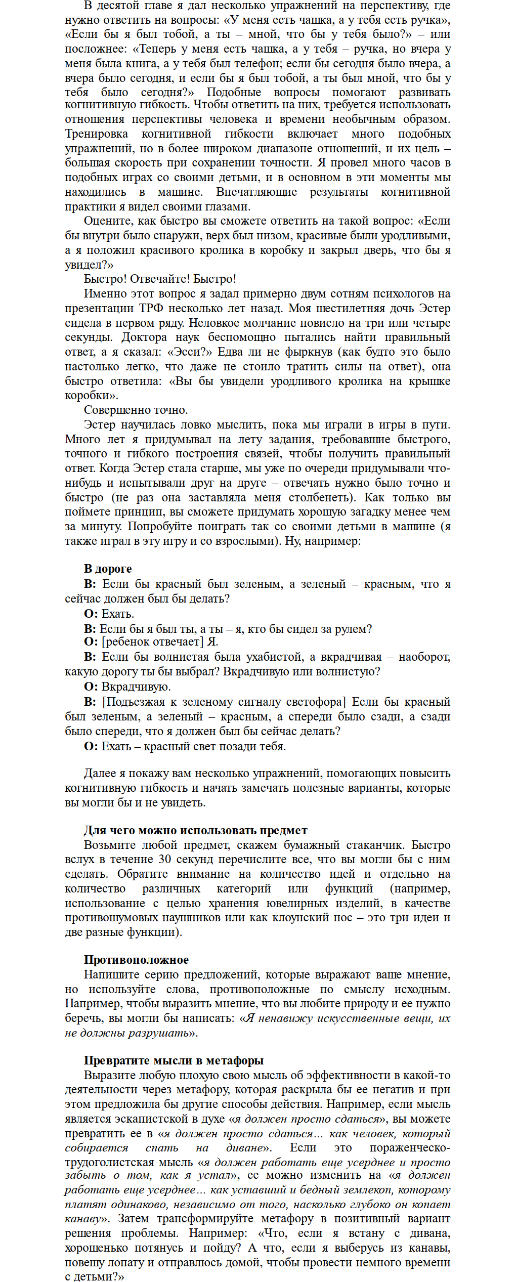 В рамках данного эксперимента предлагаю проделывать это упражнение минимум три раза подряд каждый день. Наиболее серьезно настроенные и твердо уверенные в своей дисциплинированности могут увеличить число подходов. Если главы слишком длинные для вас, то вы можете пойти на небольшую хитрость, а именно заводить таймер на 10-15 минут и пересказывать только то, что успели прочитать за это время.