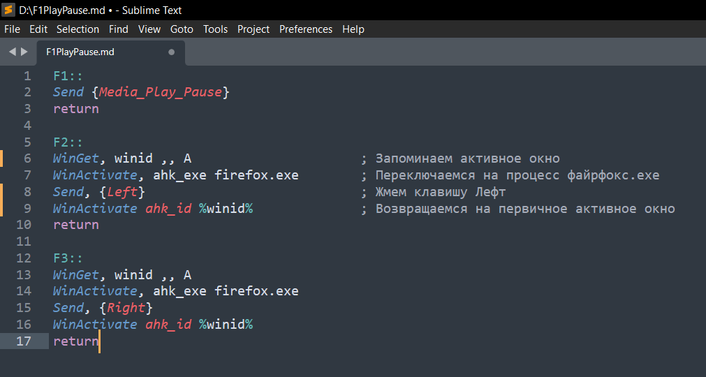 Потом пользовался текстовым редактором, желательно минималистичным, с поддержкой синтаксиса Markdown. Что-то вроде Sublime Text или Typora (у каждой проги свои плюсы и минусы). И в добавок к ним еще прогу AquaSnap, которая позволяет быстро, встряхнув окно, закрепить любое окно поверх всех окон и сделать его прозрачным. И просто делал небольшое окно редактора поверх браузера с открытым видео. Бинд клавиш тут тоже пригодился, к слову. Не нужно браться за мышь или альтабаться на браузер, чтобы на паузу поставить. В целом неплохо, но опять, что-то как-то не зашло. Хотя долгое время это был мой основной способ.