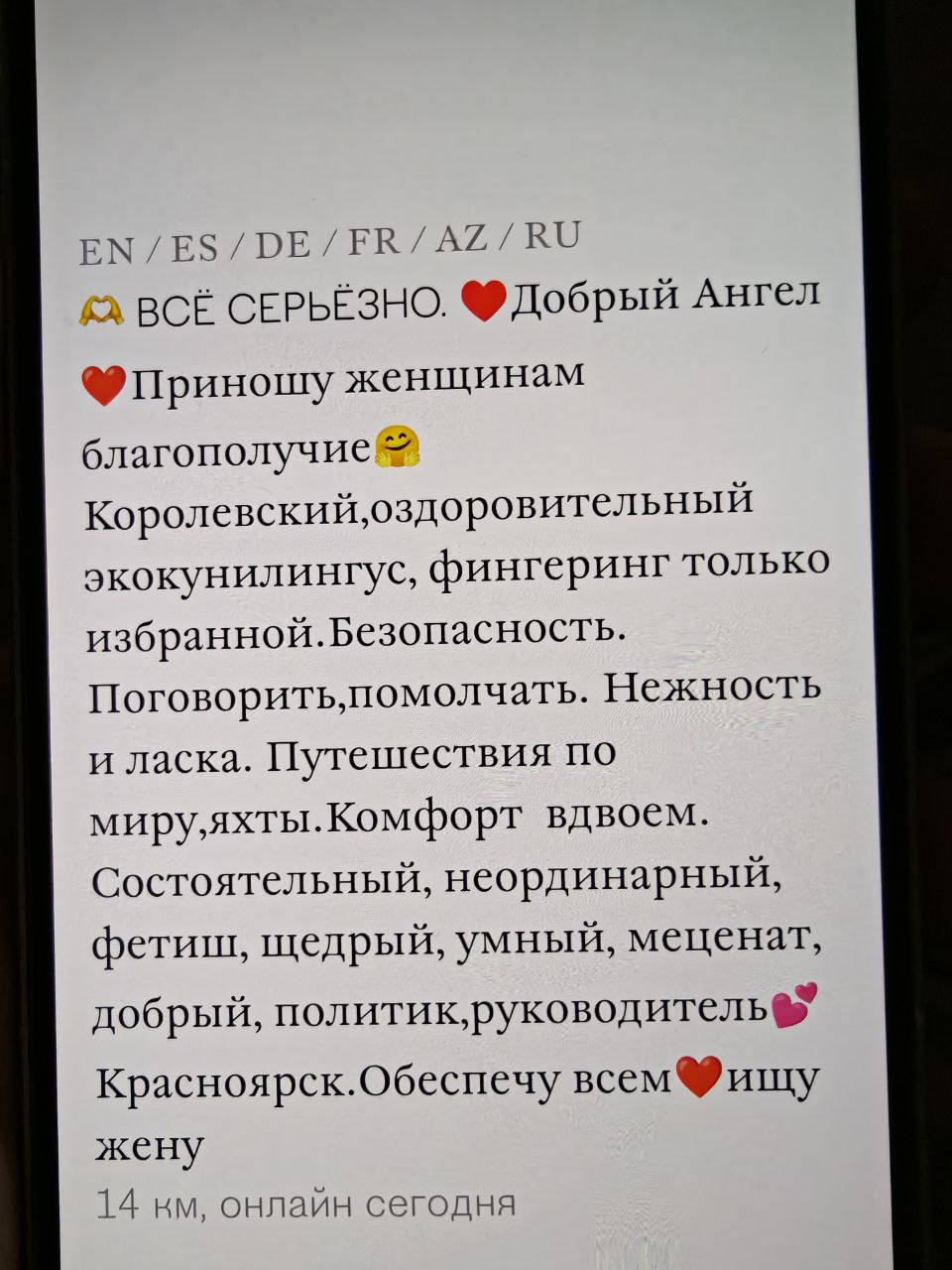 >>10522131 Смотря в каком ты городе. ДС и ДС2 есть какие-то хорошие варианты всяких альтух и можно что-то найти/выбрать. НО, сейчас пюре скатилось в какую-то парашу тиндерподобную и туда набежали "Я не такая, я жду трамвая", "Я просто посмотреть" бегемотов и 40+. Я в своей мухосрани ток с одной смог в реале встретиться, но она была 6/10. Пробуй, но ничего не ожидай. Картой РФ можно оплатить, ток сразу заходи в настройках и отключай автопродление подписки, т.к. как эти сучары не вернут деньги если ты проебешь этот момент. По поводу анкеты - главное фотки не всратые ставь, а чо туда написать сам поймешь, приложуха подскажет.