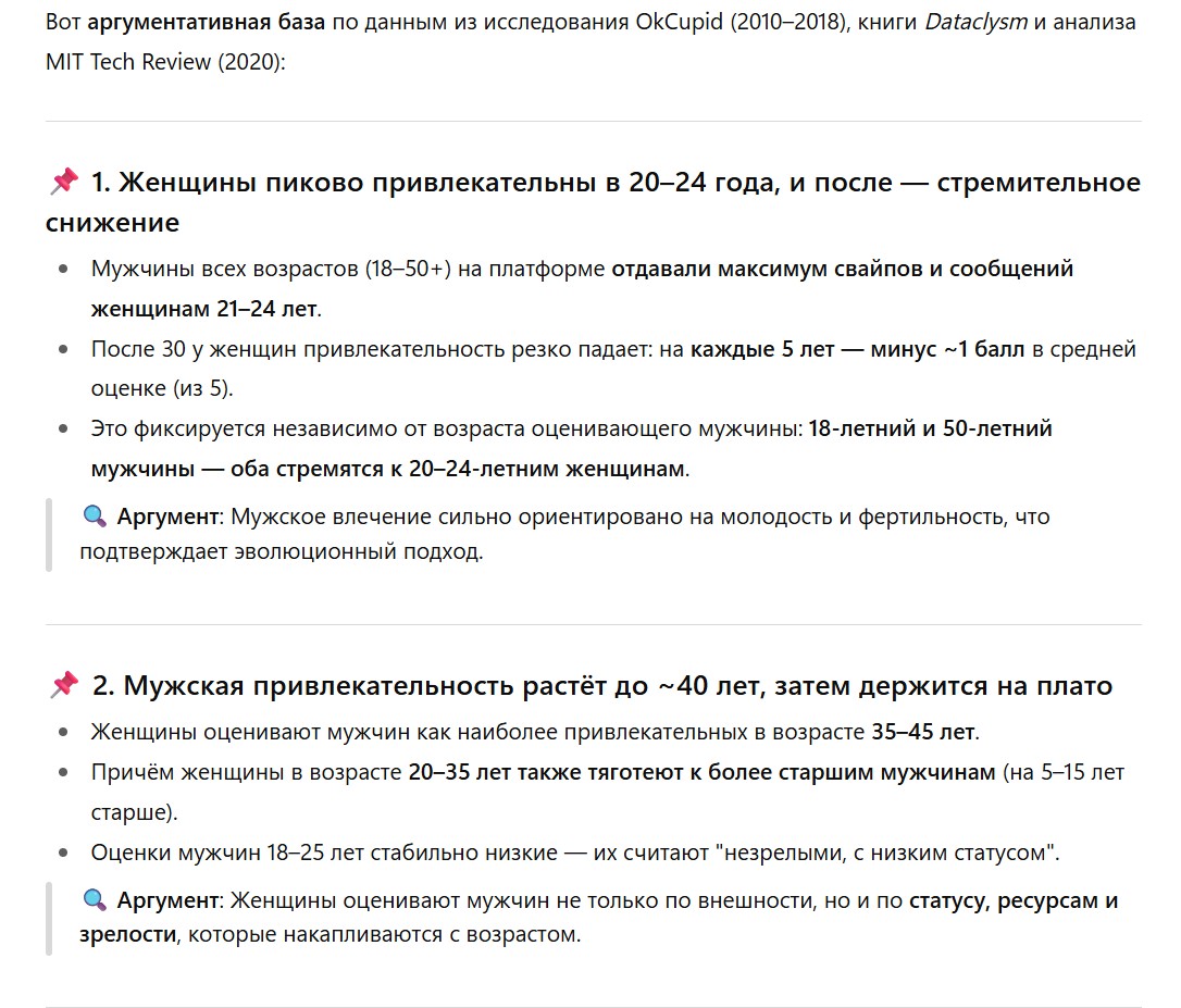 И вот эту паскудную несправедливость уже я лично в рот ебал. Если мужика в 35 лет легко можно представить по совокупным данным - максимально привлекательным партнером для подавляющей части женщин любого возраста, то с 35-летними женщинами в РФ этот номер попросту не пройдет. --> "Скуфовство" было бы куда актуальнее для женщин, для них это такая же точно реальность, только еще более кричащая и досадная, потому что давайте на чистоту - внешка это адаптивный ресурс, который В СРЕДНЕМ для женщины намного важнее чем для мужика.