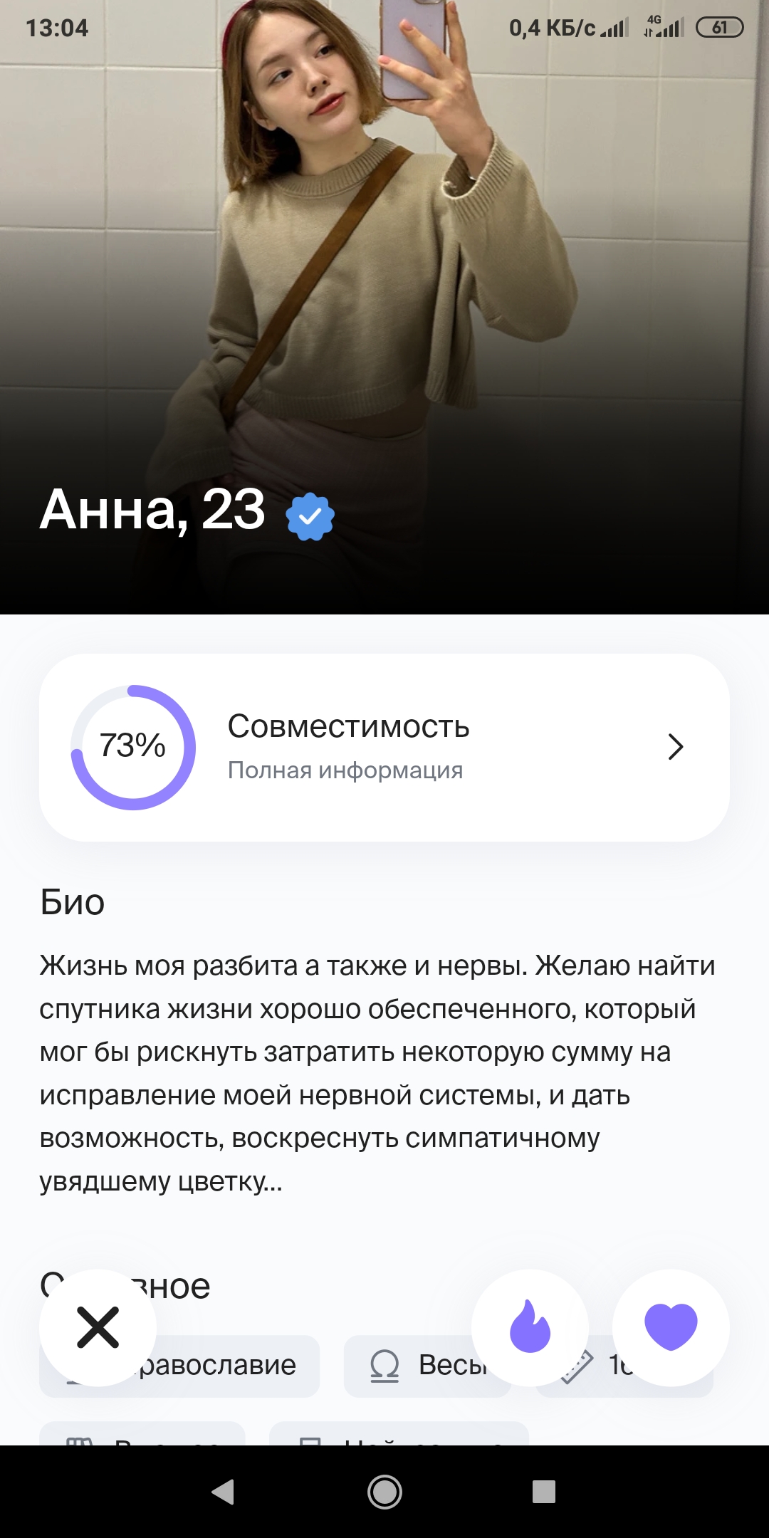 Бля сидел в твинби месяц где-то, купил премиум, фотки хорошие поставил, по фотофиллеру их выдрачивал и выбирал топ, вроде лайки шли, но тян как-то неохотно общались, сами вообще не писали, если я писал почти всегда какой-то игнор, короче ебанашки, какие-то там сидят. Сегодня поставил пьюр, до этого не хотел, думал что смысла нет, конкуренция ебанутая, но оказалось бля это намного лучше чем твинби, за день пришло 18 лайков, из которых 15 жирухи старухи, а три норм тни. Сами лайкают ебать и ты выбираешь. Ну и короче две какие-то ебанашки оказались по общению, а третья прям адекватная, сама поддерживает диалог, ищет фвб, кайфово пообщались, покидались нюдсами друг в друга, договорились встретиться. Ебать месяц хуйней страдал на твинби, надо было сразу пьюр брать. Мб конечно повезло, но как будто там легче найти тню, они там не такие охуевшие.