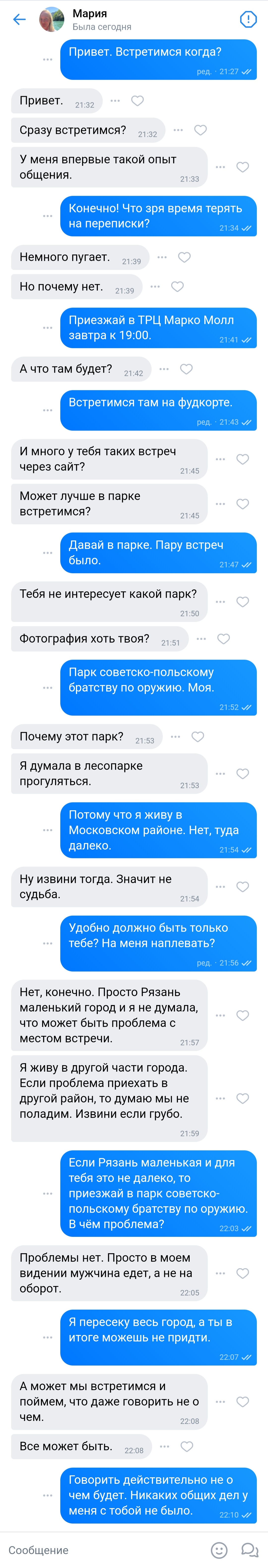 Наташка, которую я закрыл на секс, морозилась от второй встречи и вот удалила нашу переписку. Видимо ей нужен был разовый секс. Ну и дальше продолжает искать серьезные отношения.