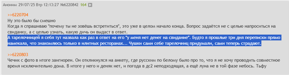 Раньше были тарелочницы, теперь кофейницы - тянки, которые готовы бросить все свои дела, потратить деньги на проезд, потерять с незнакомым человеком несколько часов, а все ради возможности попить на халяву кофе за 170 рублей. Звучит правдоподобно (нет).