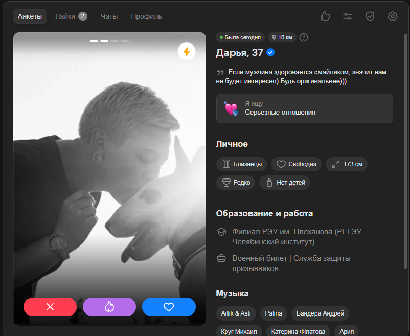 пс. куча лайков накопилось, даже лень отвечать, один хуй в реале я не соответствую себе 15 летней давности, а если текущие фото ставить то вообще хуй лаqков получу (вк знакомства это показывают)
