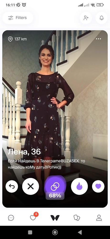 >>10269577 (OP) Бля, сменил три страны, РФ РБ и теперь Сербия - просто НИ ХУ Я. До 2023 года еще были варианты и их было достаточно, из 100 анкет 10 метчей и 1-3 свиданки в месяц вполне, а сейчас просто один лайк в месяц и то от бота. Пробовал даже пьюр - сплошные "ищу апщения" или просто блять без фото и описания. И ведь сука даже таких лайкают. Как вы вообще сейчас кого то находите?