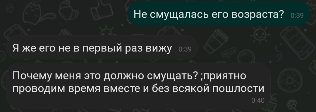 Ты мне напомнил, как примерно месяц назад я познакомился с тнёй, которая разошлась со своим парнем после 9 лет отношений. После пары встреч irl и вороха довольно вымученных пепеписок в Телеге я написал ей с дежурным вопросом о том, как прошёл день, но тутобратил внимание на её новую аватарку, на которой она улыбается в объятиях какого-то типка (сама она, впрочем, мимоходом написала, что виделась с двоюродным братом), и решил, что это выглядит достаточно однозначно, чтобы свернуть общение.