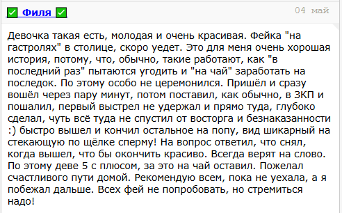 >>10286383 >Пиздец, сидит там дрочер и строчит свои фантазии У отзыва всегда есть ссылка и кто то из ходоков может сходить и проверить. Поэтому фантазеры пишут свои полотна без ссылок, об этом даже в шапке треда указано. Ну либо они пишут про мифическое "золото" которым они не будут делится но обязательно напишут про то каких стремных шлюх мы ебем