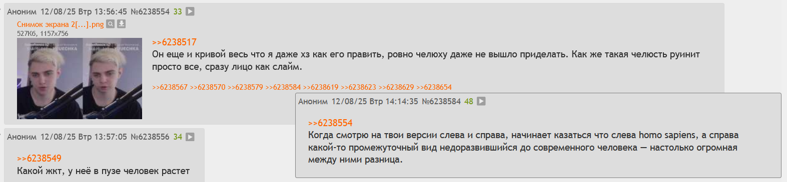 Именно такой биомусор плодит инцелов — недоразвитый гибрид тюрков и славянского дерьма, но главное что жирный где надо. И на этот мусор ебаный дрочит весь двач. Пошли нахуй просто, обдрочившиеся животные. Пока уродок не кастрируют инцелы не вымрут.