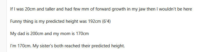 >>10287214 cейм у меня 190 см рост без обуви, но ебельдос будто бы перестал развиваться лет в 14. вот смотрю я на фото своих родаков и не удивляюсь почему. у меня вообще только бабушка по маме норм костяк имеет. нулевой норвуд тоже не спасает особо.