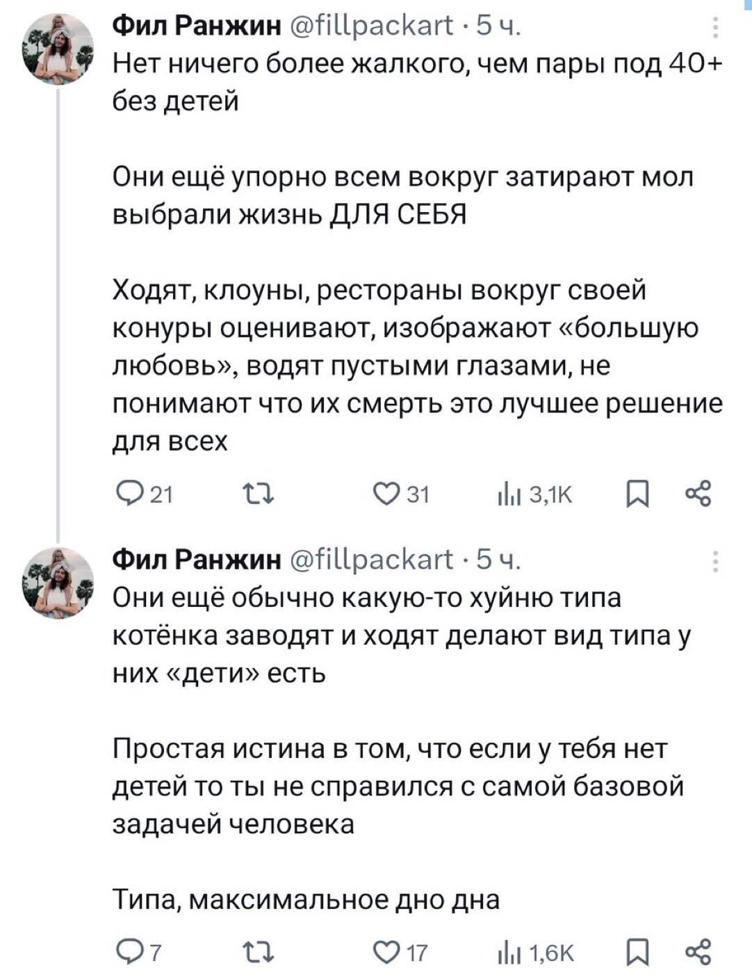 Сам то хоть раз был в отношениях? Тян которая не готова бить за тебя ебальник нахуй не нужна как и ты ей. Понарожают блядь наёбышей и скатывают всё в гойский рыночек.