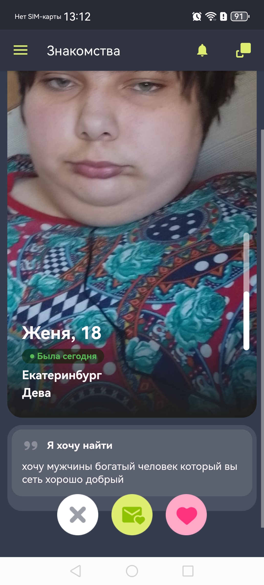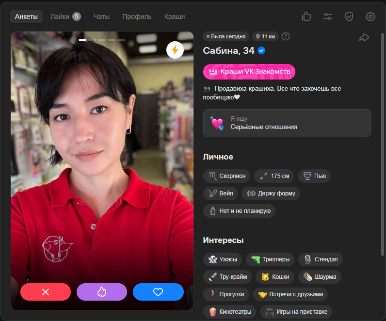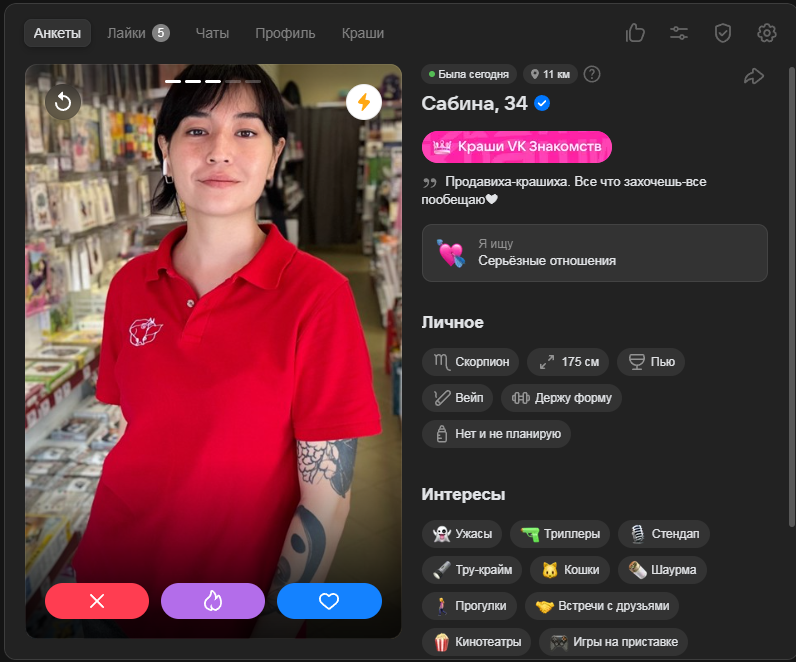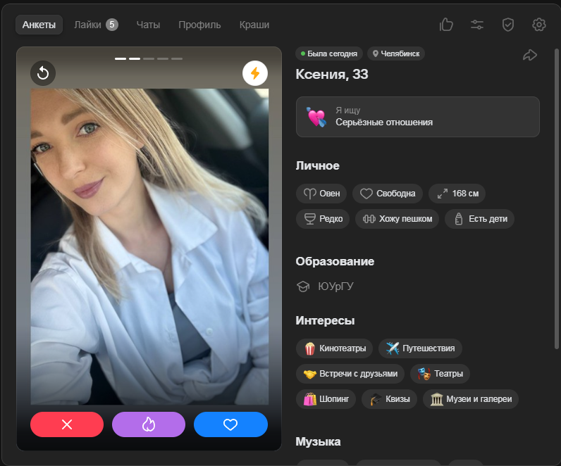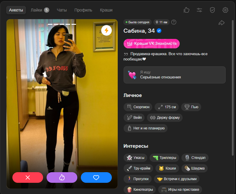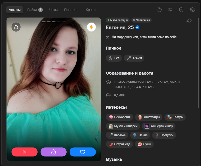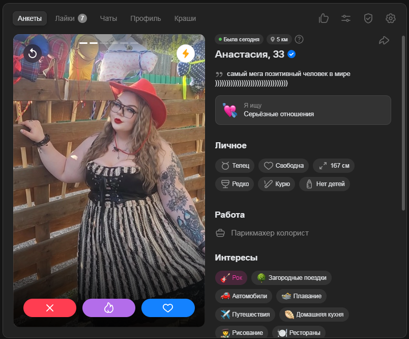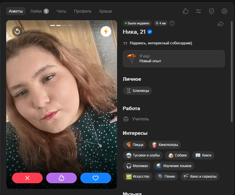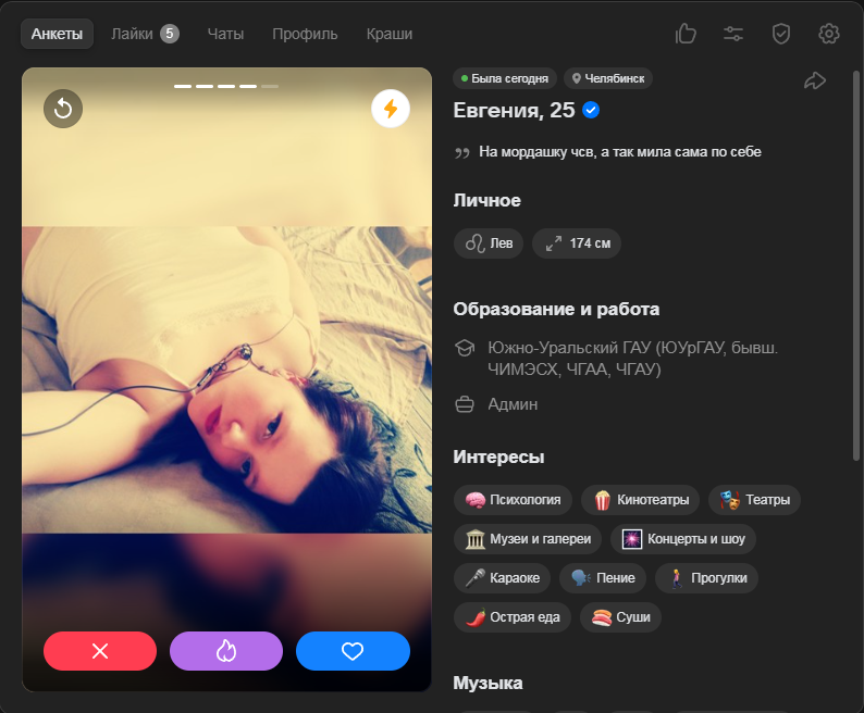 Это я вам говорю как чел который когда 7 лет назад в тиндере регался, сходу получал 10-20 матчей и затем стабильно по 2 в день лайка, сука по 4 свидания в неделю было.