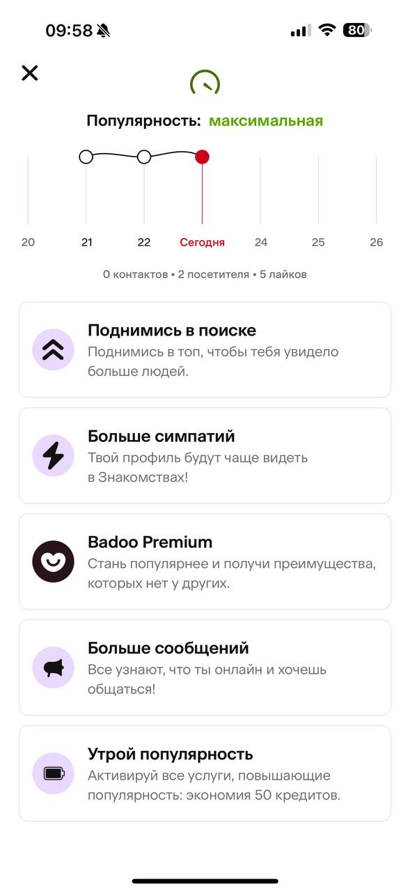 Я хуй знает, шо с этими бабами не так. Когда я был молодой и горячий, то было 3-4 лайка и тотальный игнор везде. Сейчас мне 30, позавчера только установил баду и пиздец, под 100 лайков, дохуя взаимок, стрелка популярности рвется из иконки, несколько охуительных зумерш 19-20 лвл написали сами, общаемся до сих пор. Я короче отлайкал половину из своих лайков, получил взаимки и просто устал от такого внимания и популярности. При том, что тянки в большинстве просто топ, о котором я раньше даже мечтать не мог. Отключил свой профиль, не хочу даже ни с кем видеться.