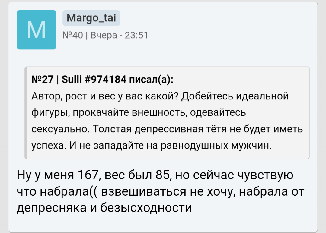Вернулся со свидания, тян 6 из 10. Ей 28 лет, и 6 лет была замужем. Расстались потому что кун не хотел детей, а она хотела. Сейчас есть пунктик на том чтобы не терять время и залететь быстрее, за год два Ну какие нахуй отношения с ней? Зачем она вообще нужна как меня это заебало а