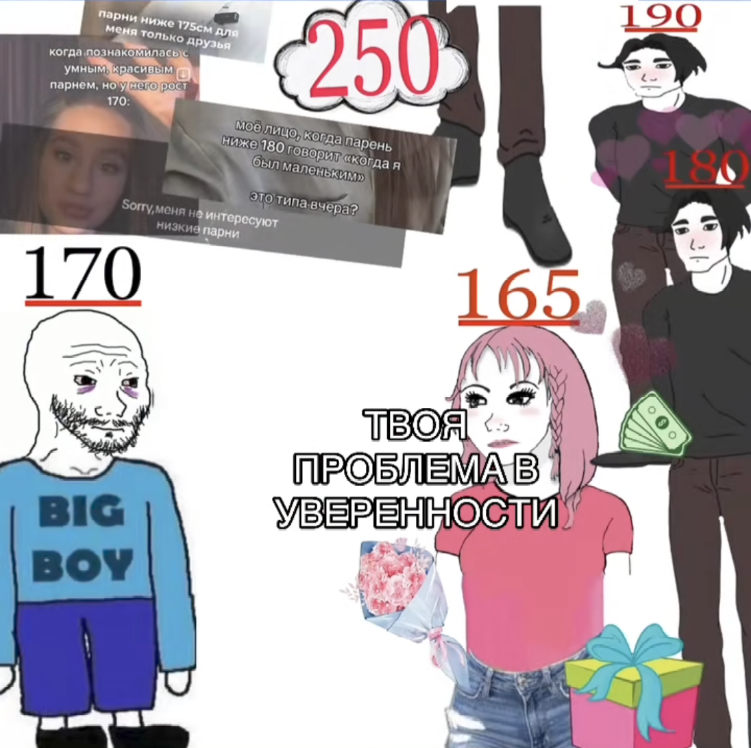 >>10303799 Было такое раньше, потом резко похуй стало. >Единственный мой плюс это Ростик 1,89 Такое дело.. Вообщем ростошизы ошибаются в том плане, что рост это не преимущество перед мужчинами, а существенный недостаток, если у тебя его нет. 80% мужчин для своего поколения имеют норм рост по меркам красоты. То есть в 2025 большинство имеют рост 181-183 (6 футов), потому выделяются только оставшиеся 20 процентов (часть из которой сильно выше среднего, 195-200 см и карланы недоедки, ростом под 170. Вообщем, если ты 185 и сидишь здесь, то это нормально, потому что этот рост обычный, стандартный.