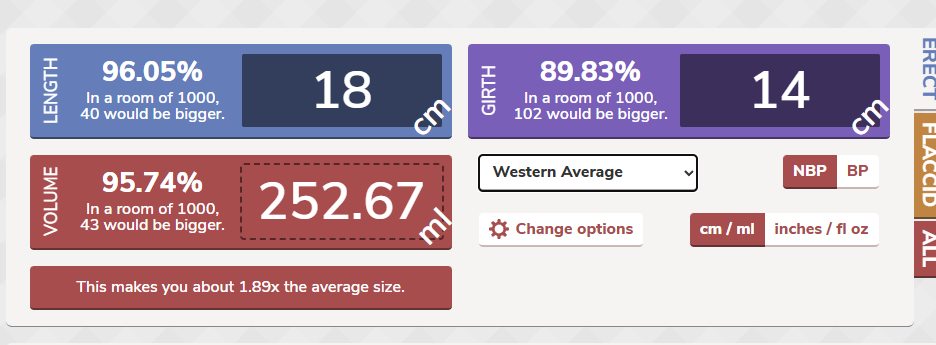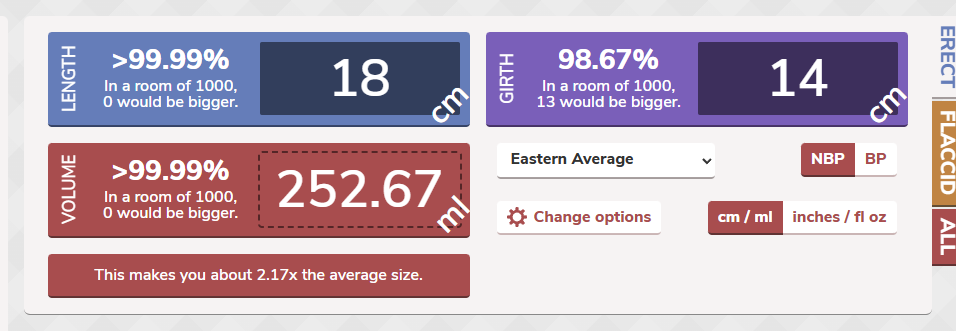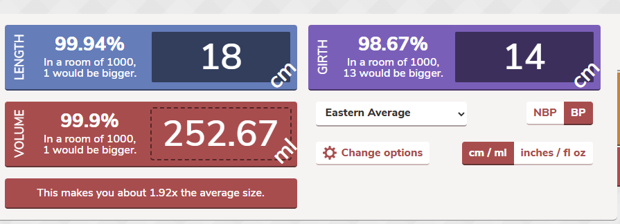 Слева я, справа цифры из ОП-поста. До попадания в этот тред в этом году я просто дрочил и как-то вообще не задумывался о размере своего члена. Даже не измерял его. Он мне не ощущается большим. Как можно иметь меньше…