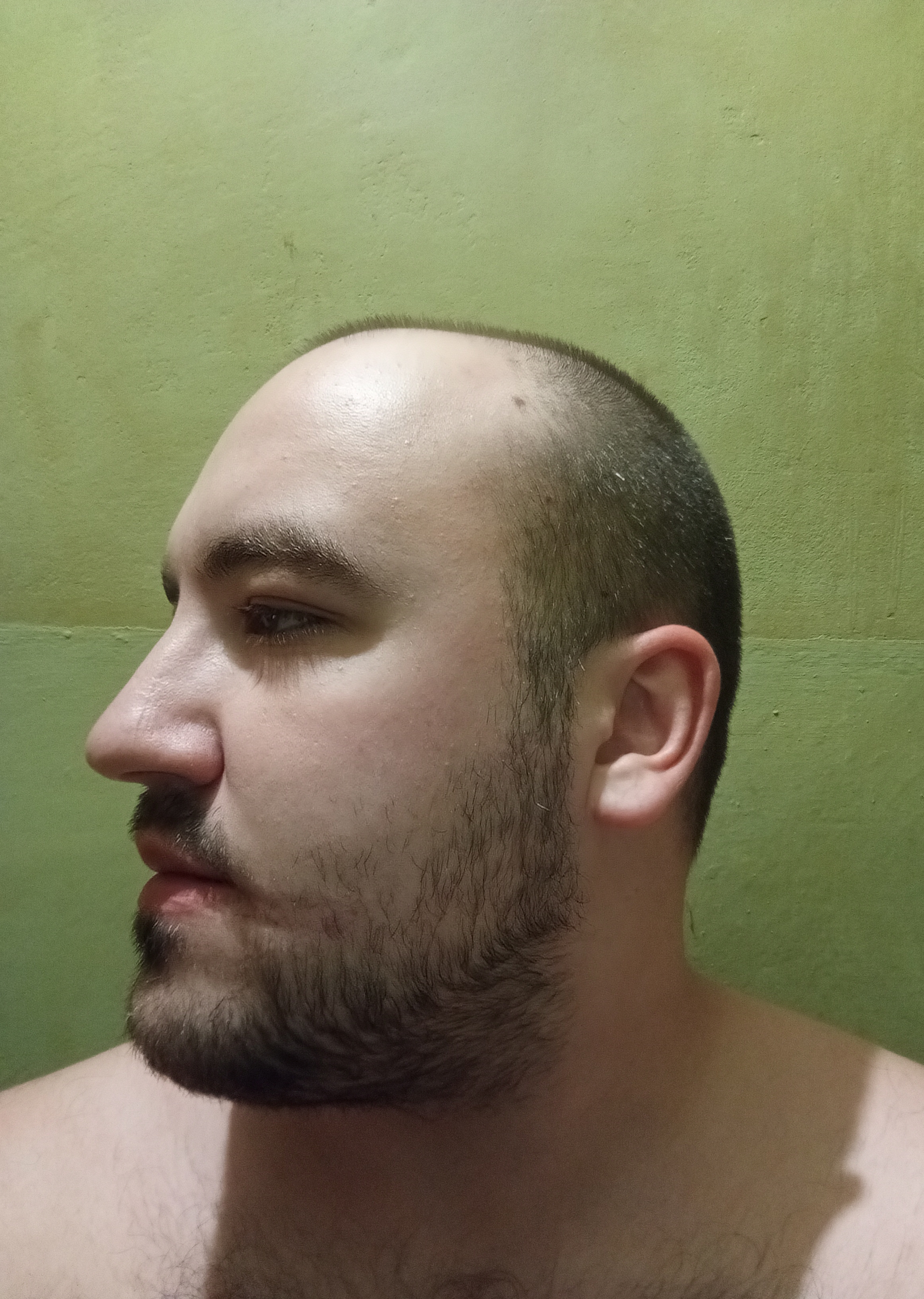 там сзади чухня как у реднека натуральная, выбривай нахуй и на лоб зачес с макушки делай (хотя уже поздно, раз уж 5 мм оставил)
