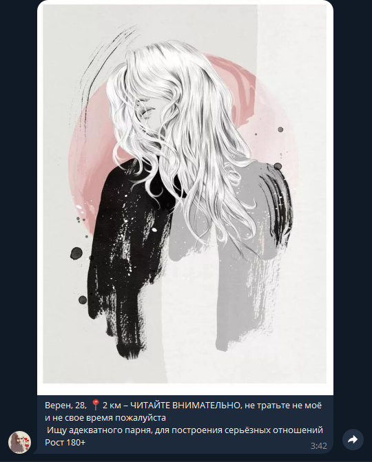 Если тянка негативно реагирует на твои сообщения в тг после irl знакомства - то ты ей не нужен в принципе? Чисто поболтать разово? Тг\номер нашёл самостоятельно, не спрашивая.