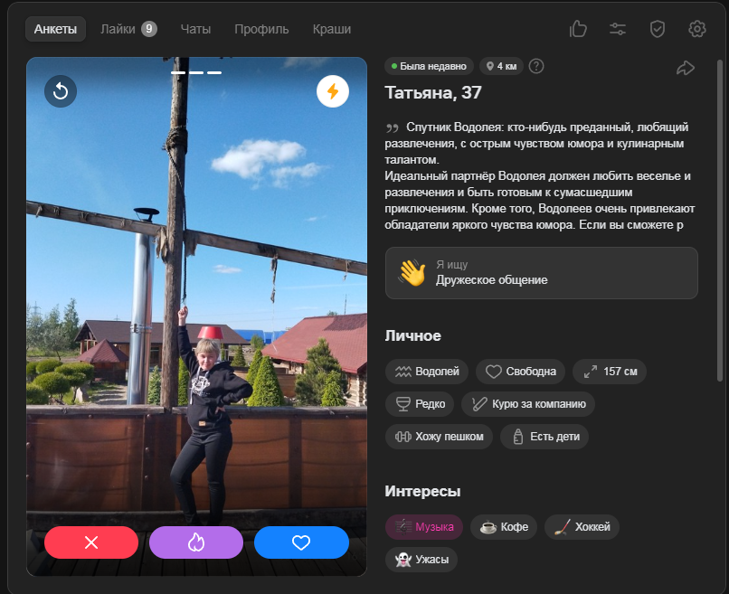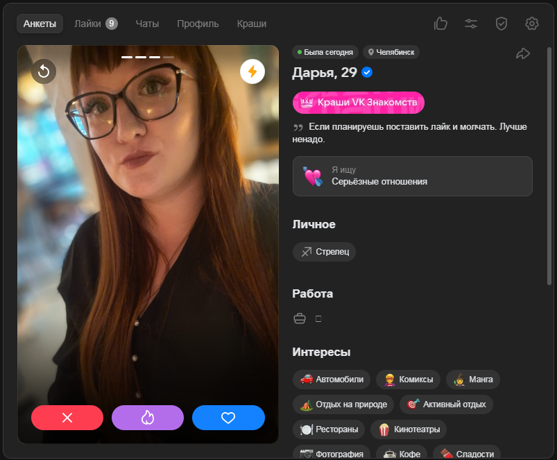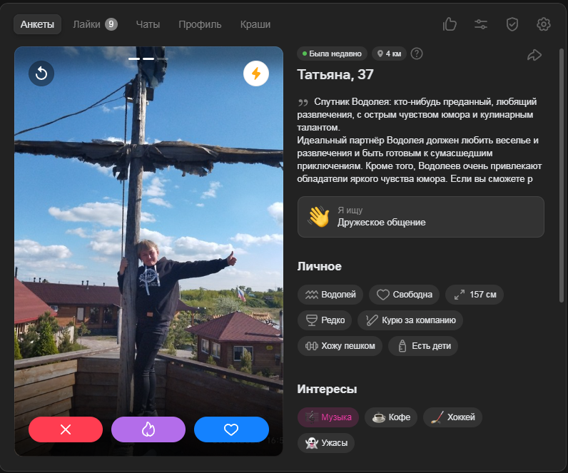 на следующий день вижу эту тянку на тиндере, в новых анкетах скидываю оффлайн-познакомиксу тот ей пишет лайтовое смс типа вчера виделись, го сириу вместе посмотрим