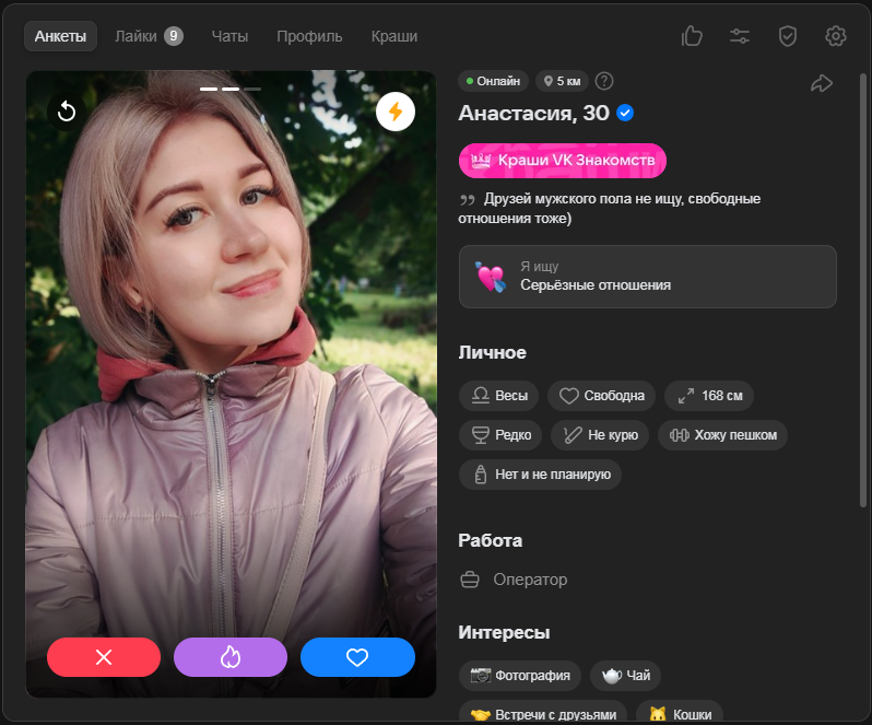 На вк знакомствах какой-то бум тупых шмар. Они запилили ебаный конкурс с призами за количество собранных лайков и теперь там сидит куча селедок, которые всеми возможными способами их фармят. Все это ради того, чтобы получить какую-то хуйню от вк типо подписки на месяц или сто ка за победу лол. При этом естественно они даже не собираются ни с кем общаться дольше пары сообщений в лучшем случае, тем более как-то взаимодействовать типо встреч и тд. Лайкают всех подряд в надежде получить ответку. Крч, если видите как выпрашивают суперлайк он считается за 5 обычных лайков в описании или даже мб просто участвуют в этой параше, то можете смело свайпать влево или даже репортить, хули нет. Раньше тянки с сз сосали с нас ресурсы в переносном смысле, теперь делают это буквально. За 300р удавятся цена подписки.