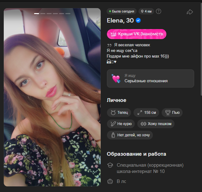 Минимальные правила предосторожности, чтобы не стать жертвой скамеров: 1) Не присылать никому всякие нюдсы и дикпики (даже без лица), не соглашаться на предложения "пошалить по вебке" и т.п. 2) Не переходить по подозрительным ссылкам в переписке (а если все-таки перешел - не вводить там никаких личных данных) 3) Не соглашаться на просьбы одолжить денег, купить что-то (в том числе билеты в театр или кино), или задонатить куда-то 4) Встречу IRL назначать только в проверенных местах и заведениях 5) Не соглашаться на предложения во что-то инвестировать или влошиться еще в какой-нибудь проект, обещающий чудесные доходы. Самый неприятный скам, поскольку перед этим тян может изображать активное и заинтересованное общение на протяжении нескольких дней, кидать кружочки и голосовухи, пока не войдет в доверие. Обычно они утверждают, что живут где-то за границей и не могут встретиться прямо сейчас, и очень быстро предлагают перенести общение с СЗ в мессенджеры. Подробнее - гуглить "pig butchering scam". К постоянному вопросу "неужели на такое кто-то ведется": лох не мамонт, лох не вымрет. Если этим продолжают заниматься - значит, кто-то ведется.