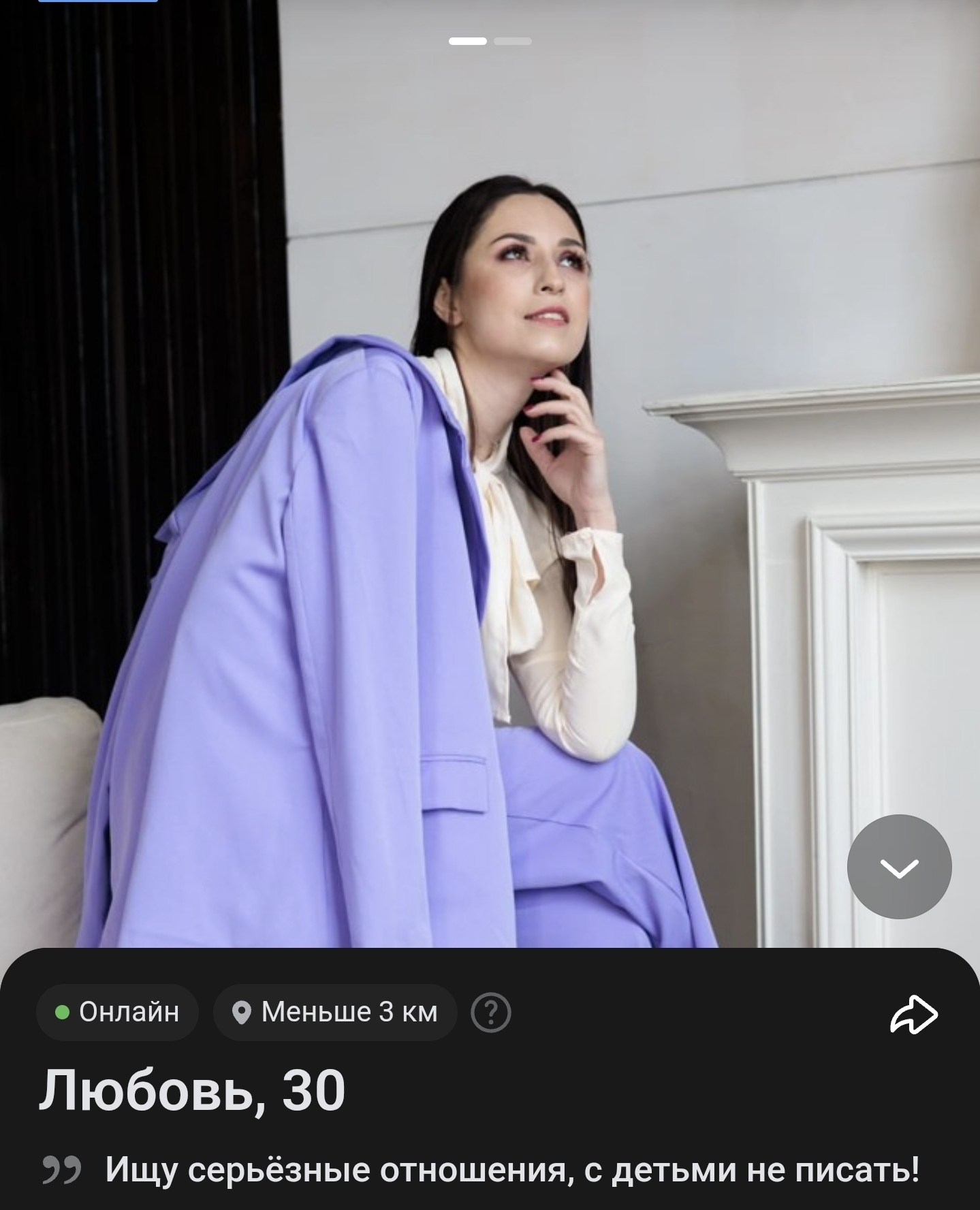 1. Ей нужна подружка с членом для развлечений по кафе , боулингам кадингам и т.д. 2. У нее уже есть парень для встреч, и она ищет Только серьезные отношения 3. ЕЕ недавно чпокнул и выбросил на мороз чедик, и теперь она ищет Только Серьезные отношения, и боится что с тобой история повторится 4. Она недавно закончила длинные отнощачи ищет подушку для нытья + пункт1.