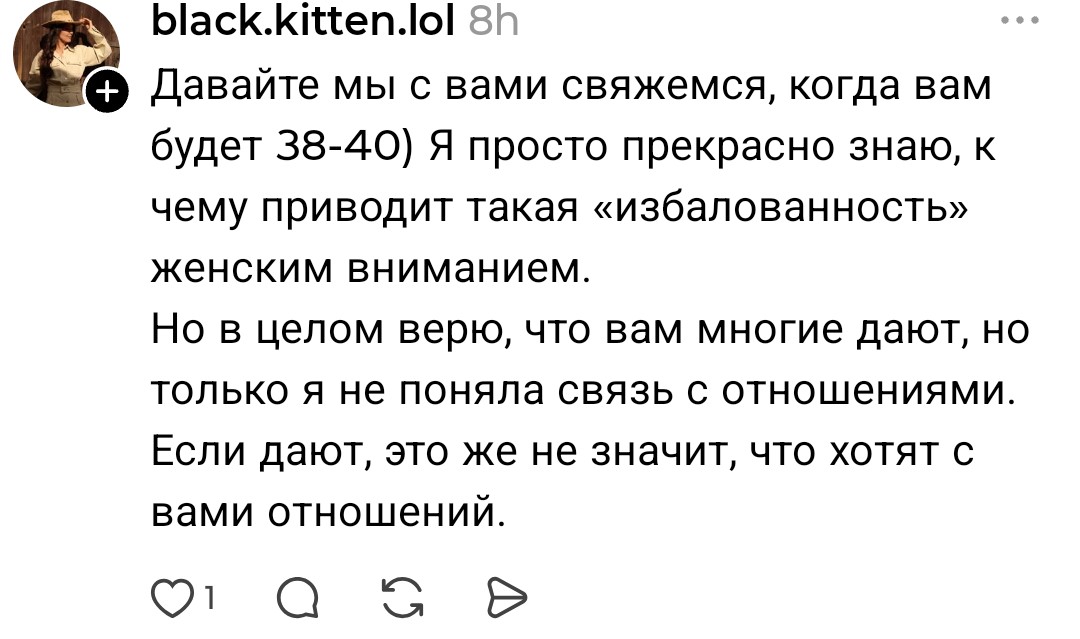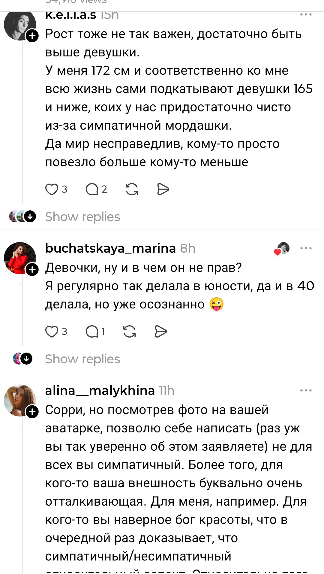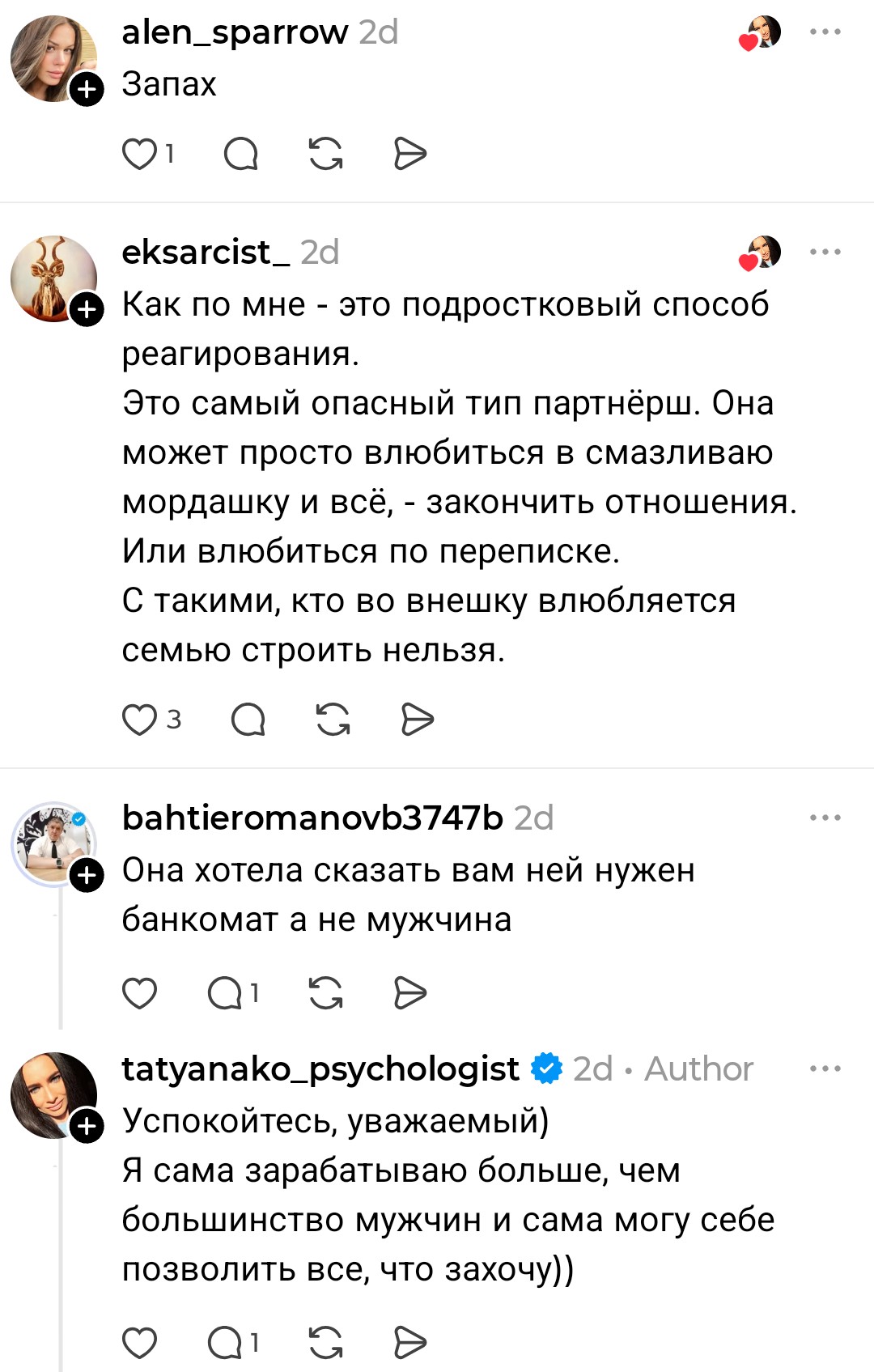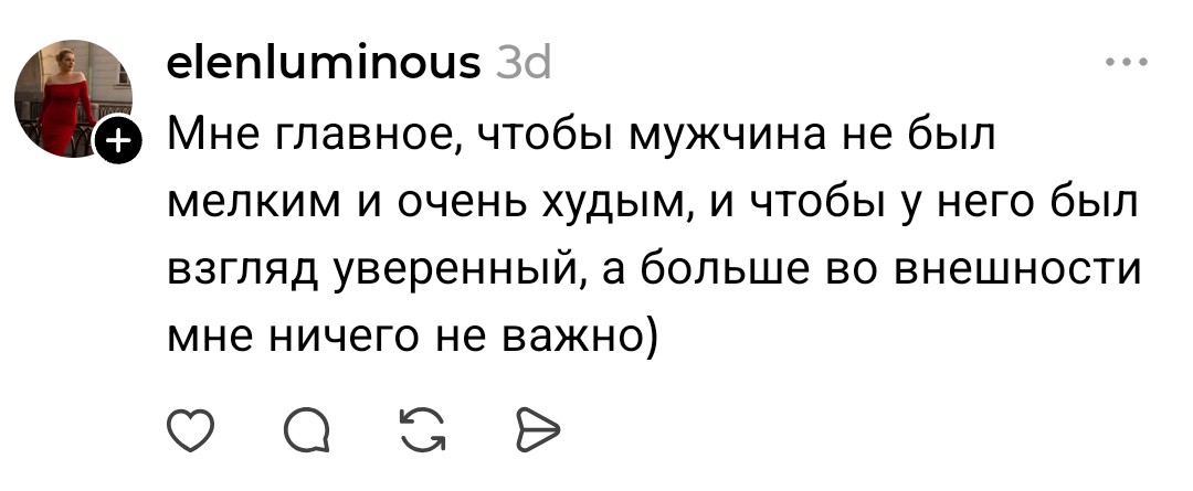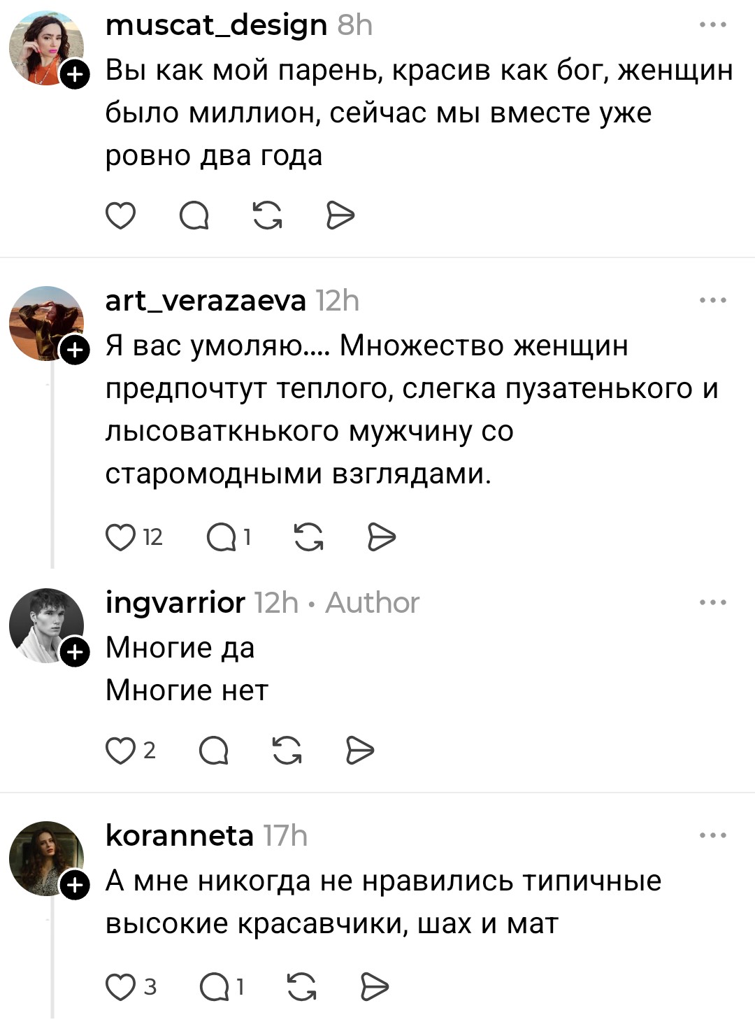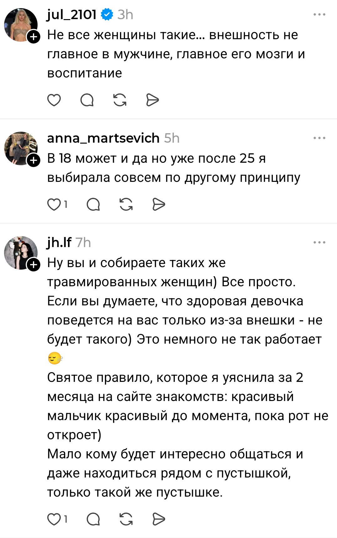 Всё хватит продолжений. Судя по многим скринам большинство отрицает важность внешки или что внешка важна до 25, а дальше женщины якобы умнеют и на другое смотрят