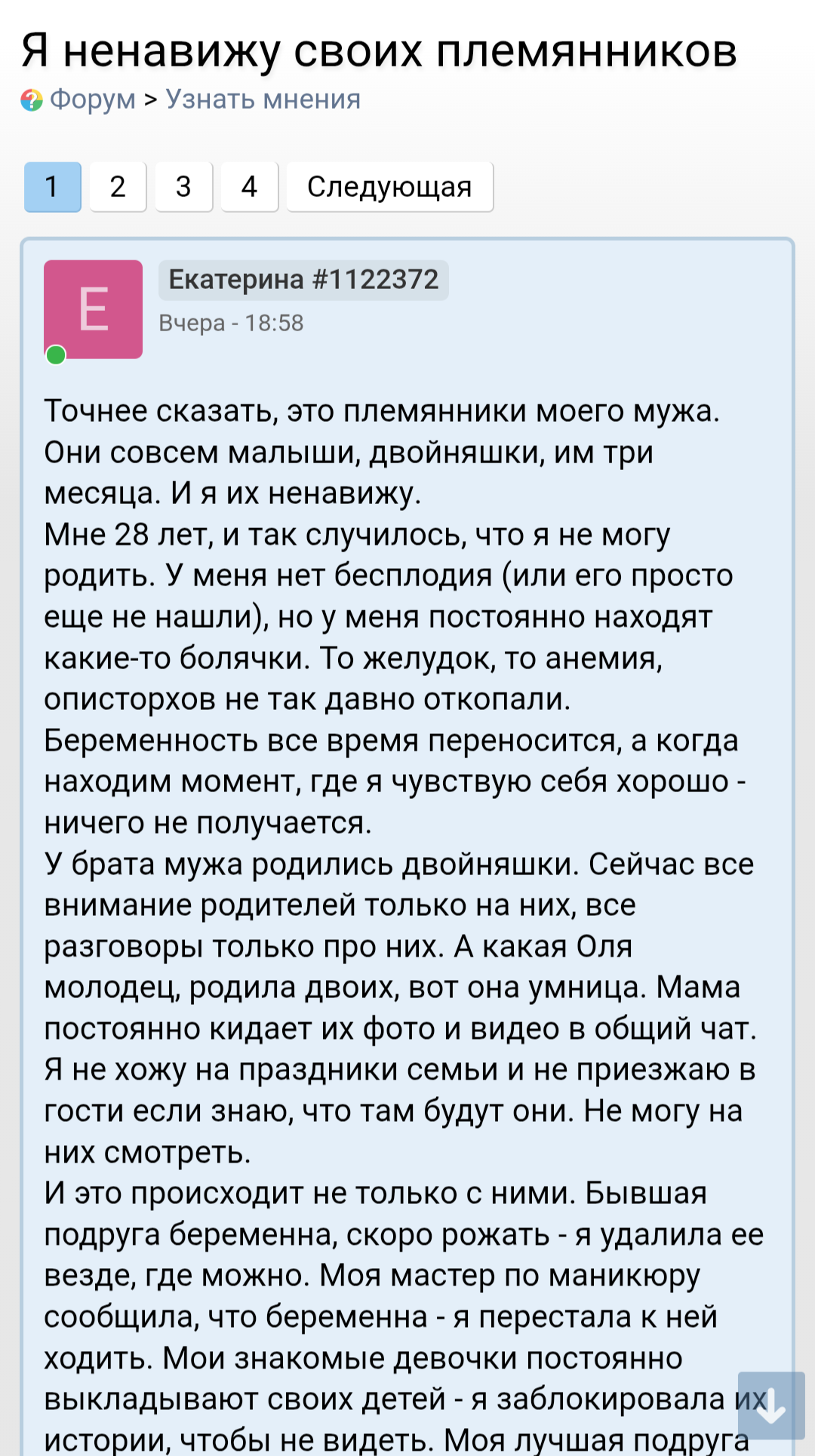 >>10329032 >Мне обидно, что все могут, а я нет. >Мы просто жили для себя. А когда всё есть, ничего не выходит. >Они малыши. Я их ненавижу. >Бывшая подруга беременна, скоро рожать. Я удалили и заблокировала её везде. Ну она реально на голову больная и обиженная пизда. Ей и вправду не стоит рожать. Ещё родит инцела обиженного потом.