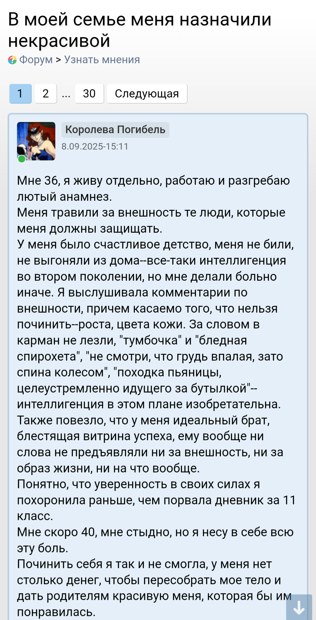 >>10328013 Чел, без обид, но никакая семья, секс и прочее тебе уже не светит. С обычной внешностью, невысоким ростом и без хороших денег в 40 лет на что-то рассчитывать как минимум наивно, а то и глупо. Пора бы уже понять и смириться