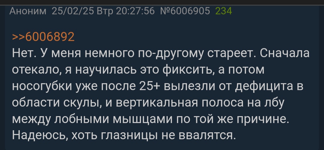 >>10337483 Мне кажется, сейчас у всех парней возврата 16- 50 самые востребованные девушки как раз 27-33, в этом возрасте шикарно выглядят, как 20 летние в нулевые. Ещё и реализованные, с деньгами Часть из них в отношениях/браке и мамы, часть - те самые эскортницы, инфлюенсерши, блоггеры инфоцыганки, модели одежды на вб из инсты. Либо, как тут говорят, невзрачные скромные девушки с комплексом неполноценности, возможно. Которые ещё продолжают самореализацию. Но самый хоррор у 40+, почему-то все женщины 40 лет злые, часто такое наблюдаю А я пишу, потому что среди своих ровесниц также вижу проблему, что мало нормальных, без эмоциональных качелей, или страхов, фобий, например, ревности и нарушении личных границ Тян 19