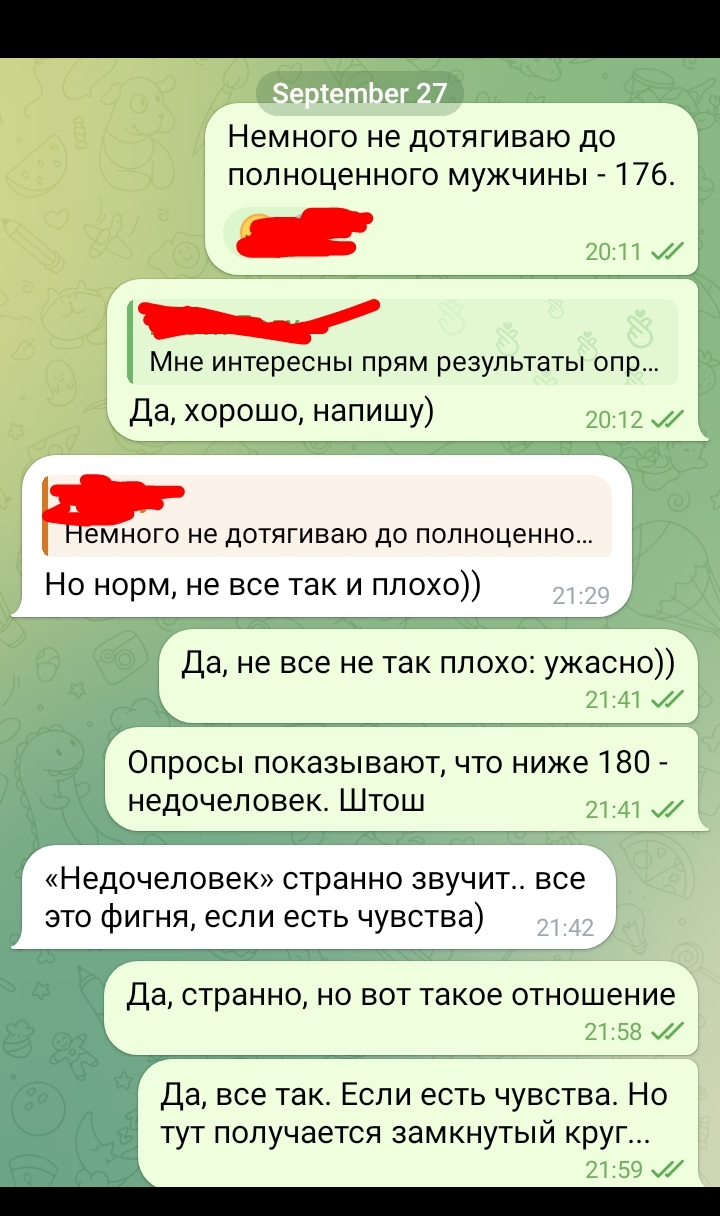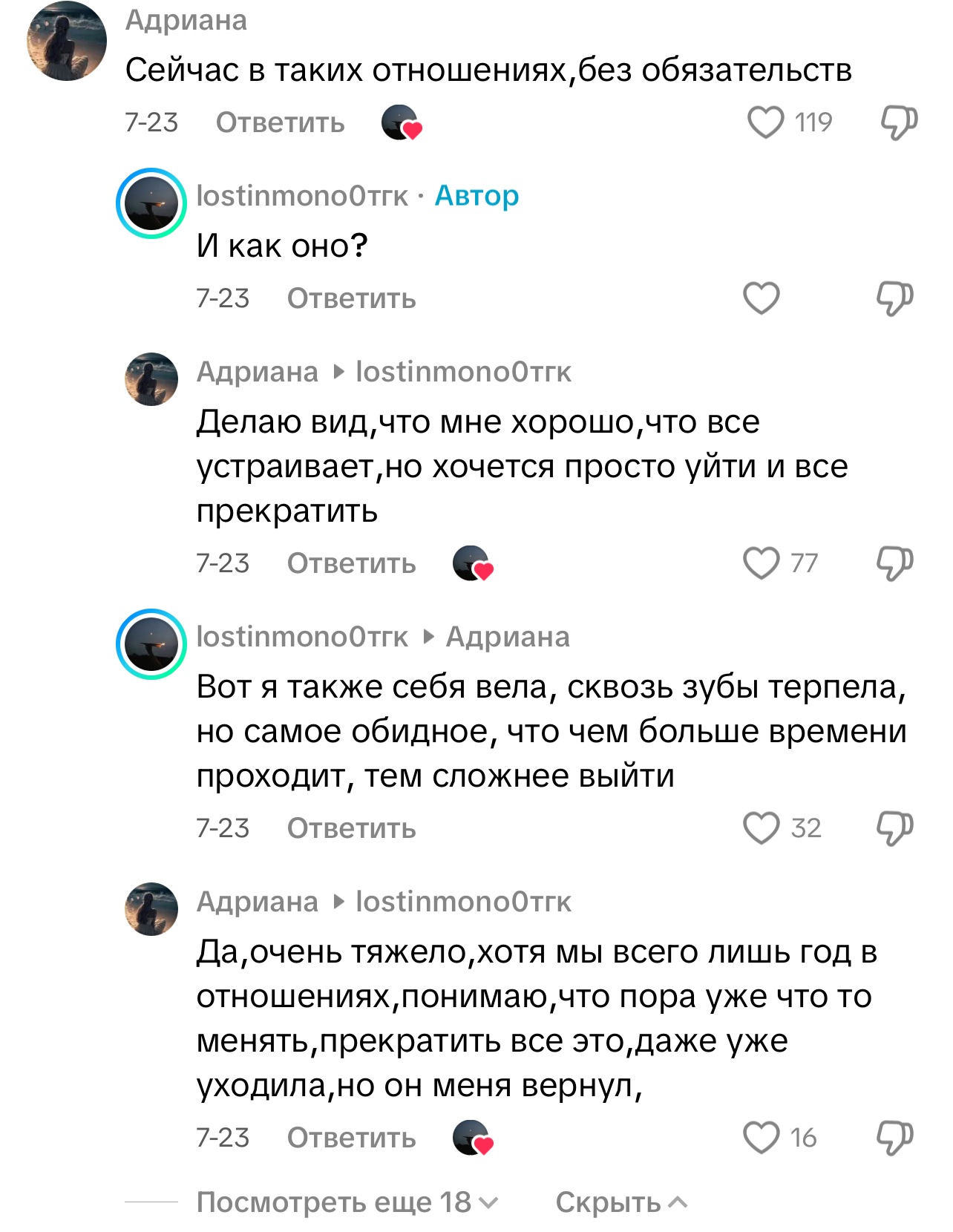 Чтобы там не писали инцелы о легкодоступности отношений и секса для женщин, но все вышеперечисленное работает и в обратную сторону к нам: игнор,грубое отношение, внезапное удаление переписок, нежелание переходить в тг. Сайты знакомств порочны в обе стороны