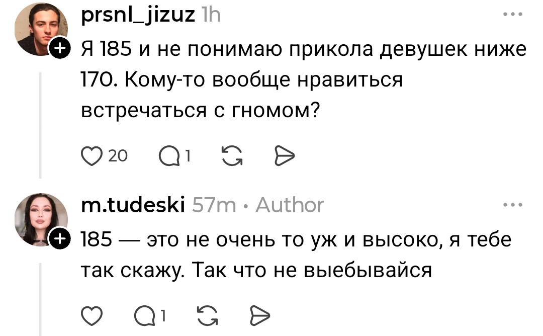 >>10349456 (OP) Мими-высокобог тут? Вот для кого то 185 уже считается карланским ростом, а ещё аноны почему то удивляются, что их рост тупо средний и не роляет.
