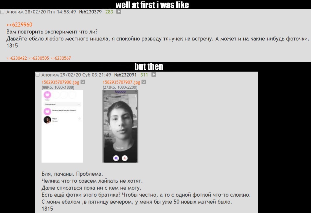 >>10350189 Все вот эти советы про забейте, расширьте кругозор звучат как издевательство, я говорю мне есть хочется, а мне говорят да ты лучше погуляй сходи. Ты не 8-9/10 с такой внешкой невозможно быть одиноким, пример с тянкой либо пиздеж и она тоже ниже 7/10, либо один на миллион случай и то там животного желания насадиться на хуй этим толстякам при первой встрече наверняка не было - то что доступно как раз 8-10/10 кунам, а вот эти все добиваться это унизительно.