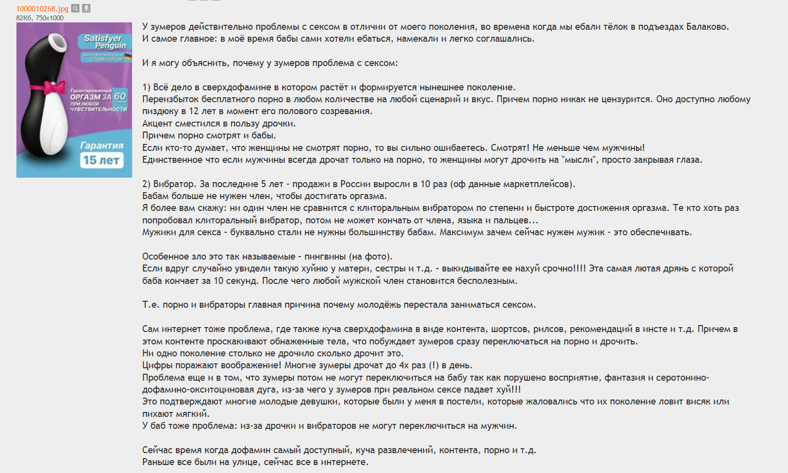 >>10352855 Полностью согласен с пикрил и я пришел к такому же выводу, с той лишь разницей что это не только у зумеров так, а почти у всех современных, ещё не старых людей. Тут не только порно, но ещё и тиктоки-рилсы с безконечной лентой, фастфуд, сладости за копейки, вейпы, бухло, наркота, маркетплейсы, антидепрессанты. Секс как будто затерялся во всей этой куче выбора простых удовольствий