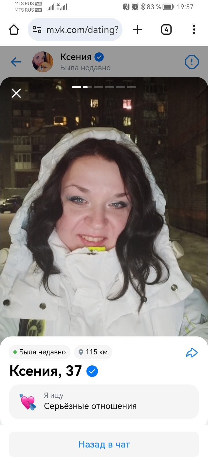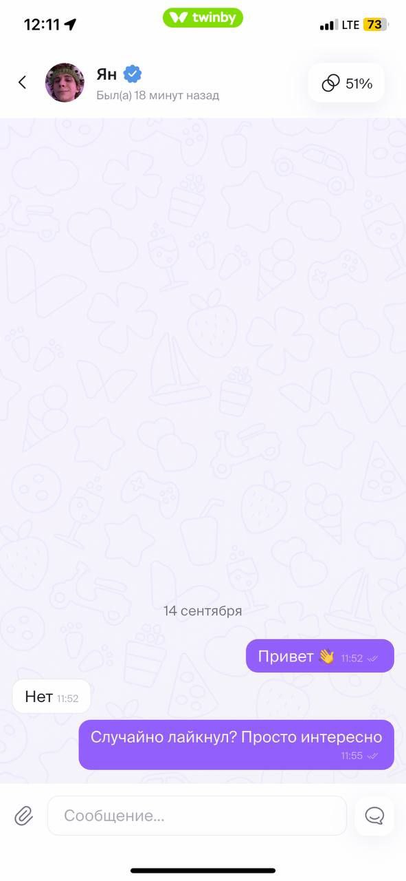 Я анон, который всё ныл тут про шадоу бан в говнинчике. Прикиньте, сегодня он у меня внезапно заработал, и тут же стали лайкать (скам боты конечно, но они служат для меня индикатором что мою анкету хотя бы видят), и сегодня одна ответила на мой лайк и оказалось что она норм ведёт диалог, не односложно-одномозгоклеточно как обычно бывает
