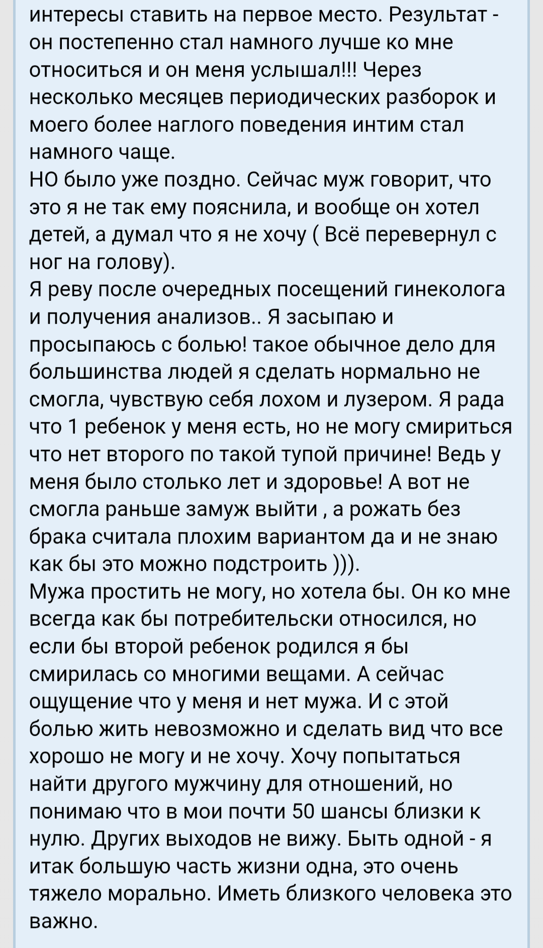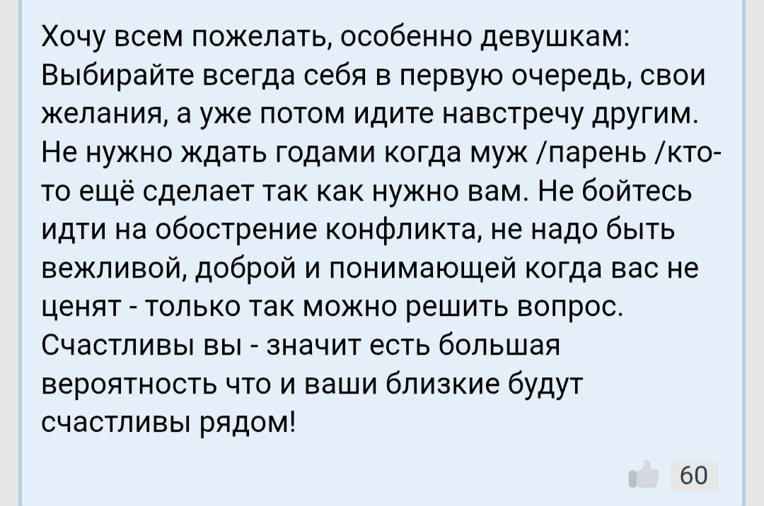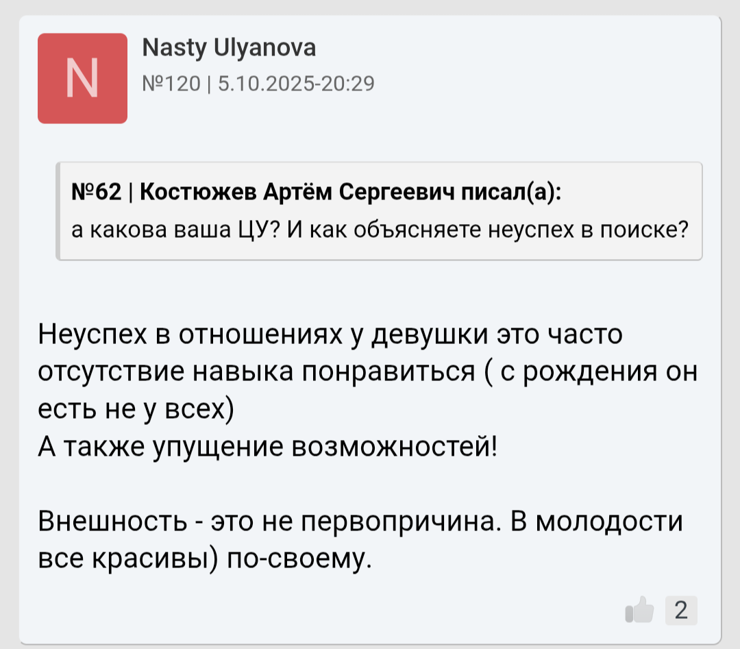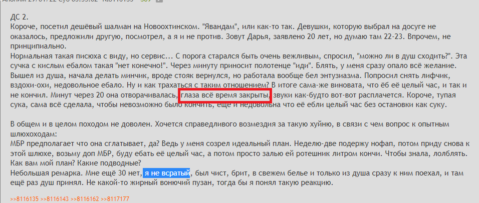 Я к чему про нее рассказываю. Некоторые женщины (их мало) выбирают совсем не по внешности. Это вы, местные долбоёбы всё считаете что люди всегда и везде выбирают исключительно только по внешности. Нет, это не так. Многие осознанно внешность игнорируют и смотрят что есть внутри.
