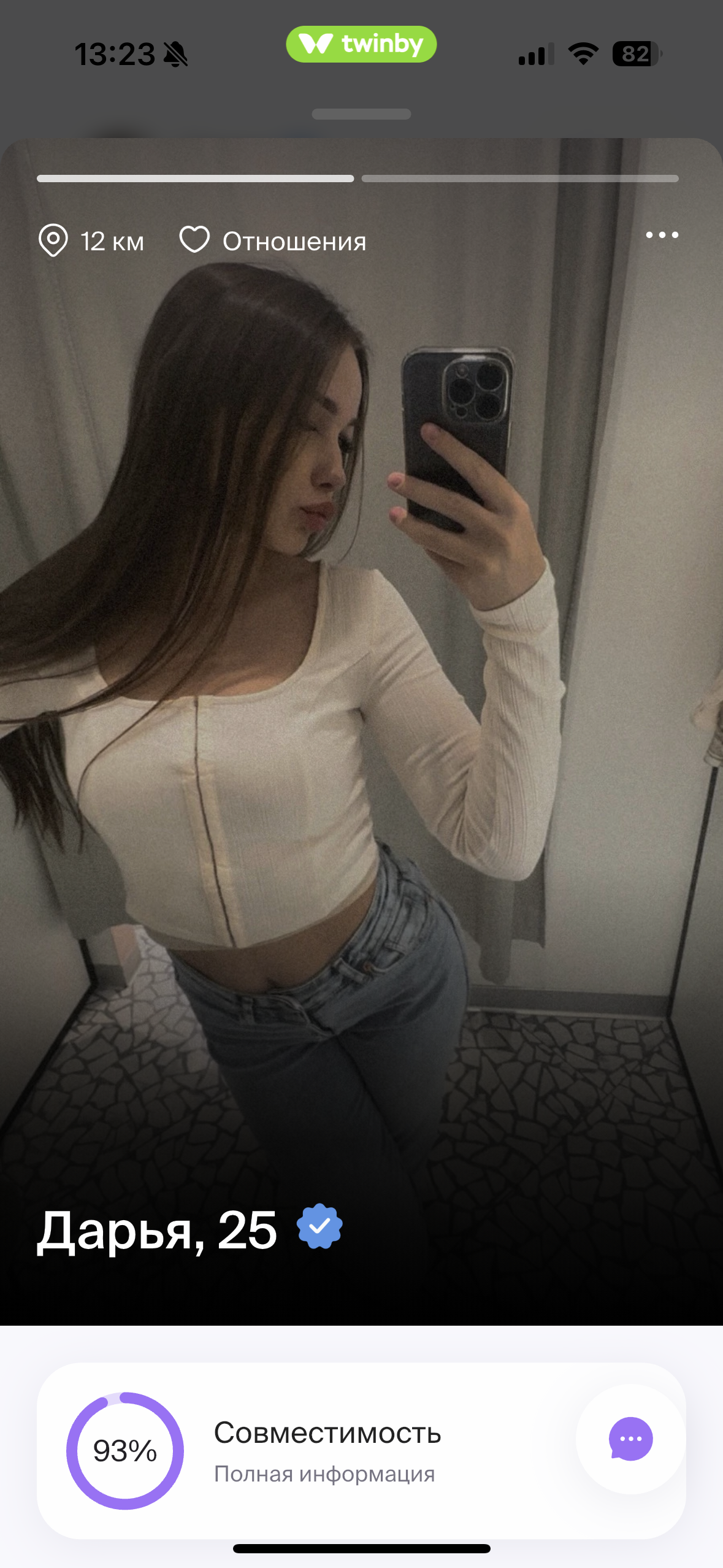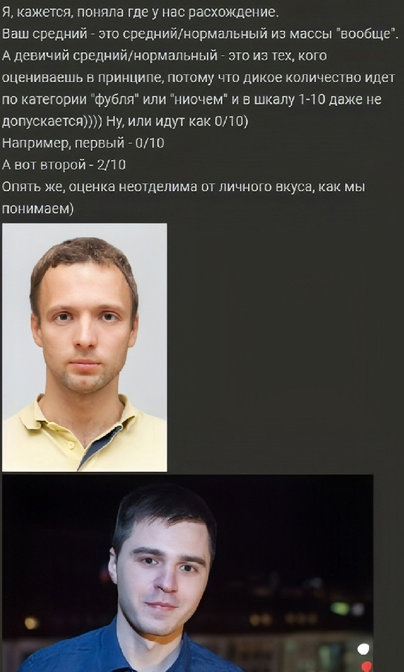 >>10362680 >>10362765 Так на моих скринах наоборот подтверждение, что если не зашёл бабе она будет общаться как амеба, противоположное уже скидывал. Но и это тред не инцелов, причина подрыва? >>10362775 А в чем пиздабольство? Не считаю свою внешку какой то ахуенной. Но я знаю что определенному количеству баб я нравлюсь. Про сотни лайков я не писал никогда. Если активно лайкать дв до лимита в 50 шт получаю 12-15 взаимок в среднем. Ну то есть каждая четвёртая пятая. Только пару из них напишет. Если не лайкать вообще, то прилетает максимум 1-2 лайка пассивных, а то и ноль. >>10362789 Повторю, для определённого количества баб-точно да. Их и стараюсь выводить