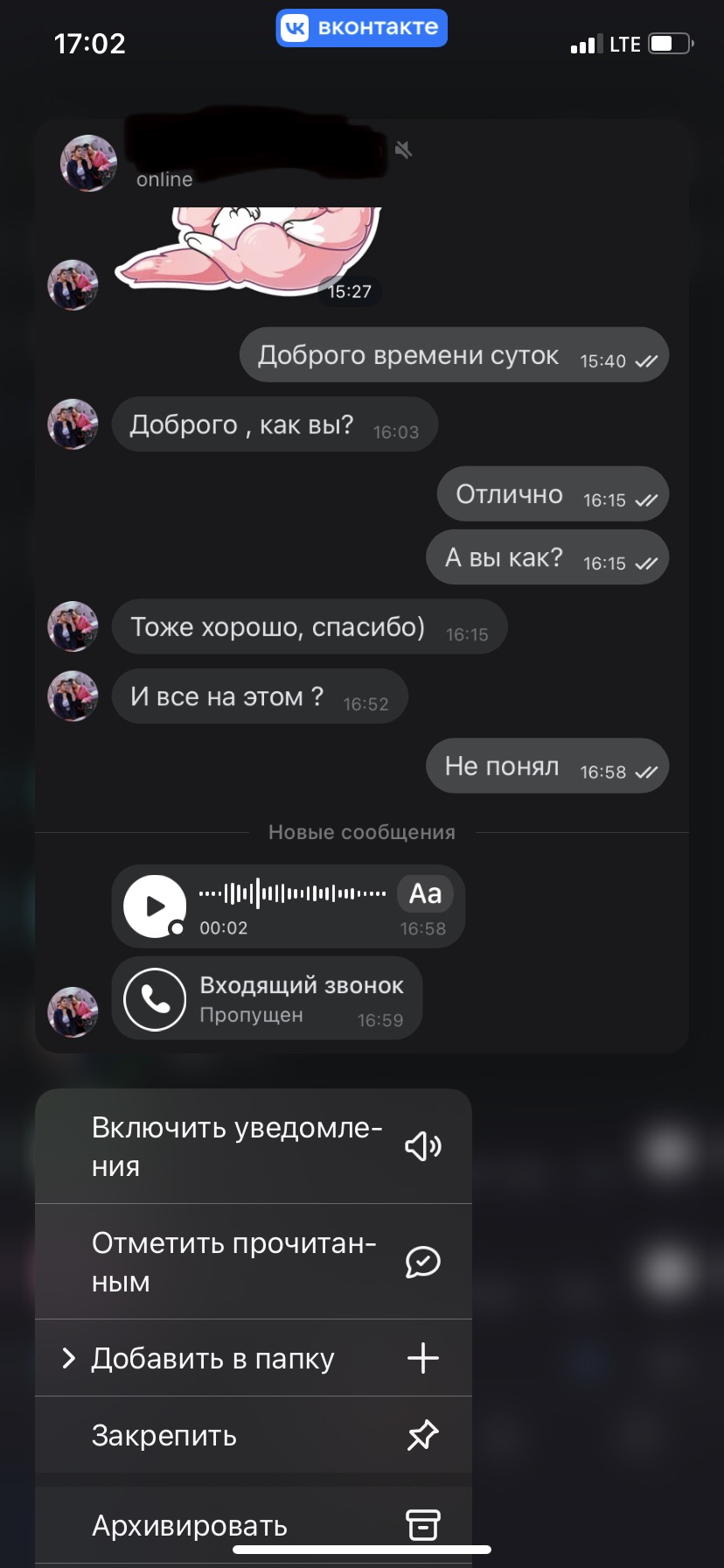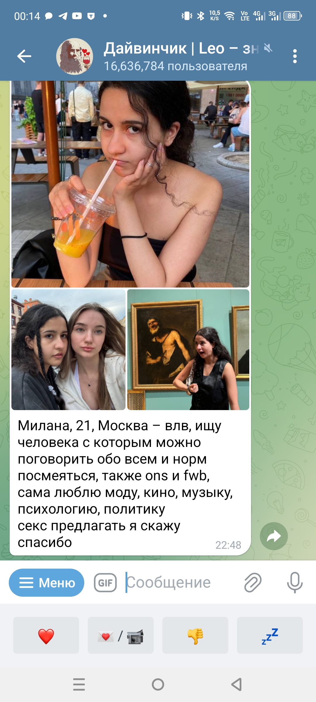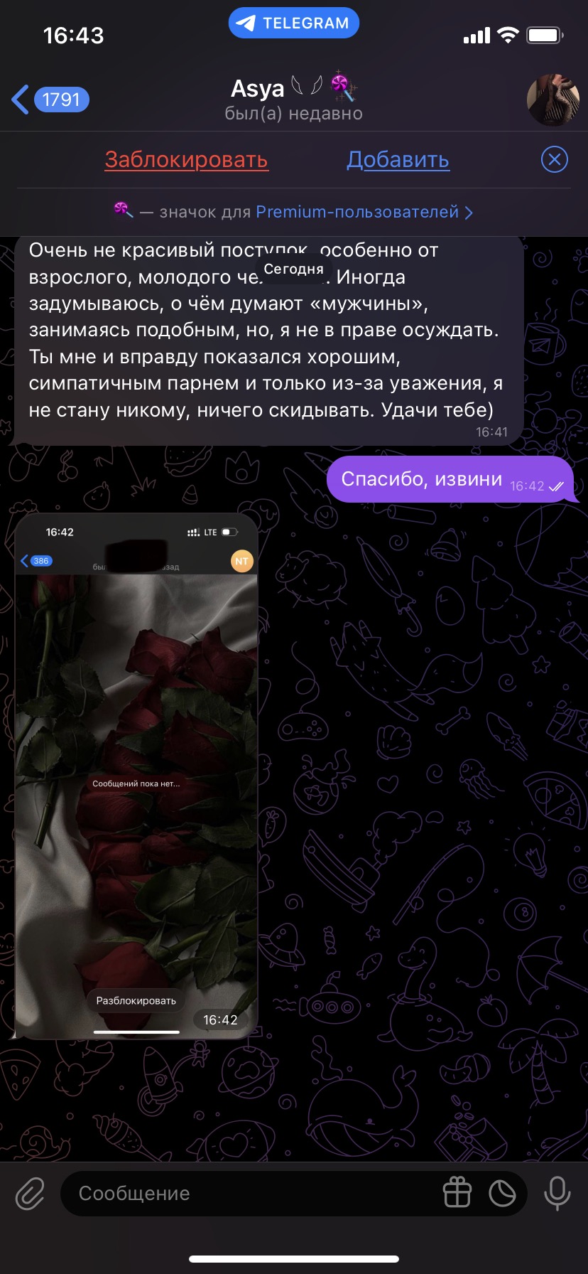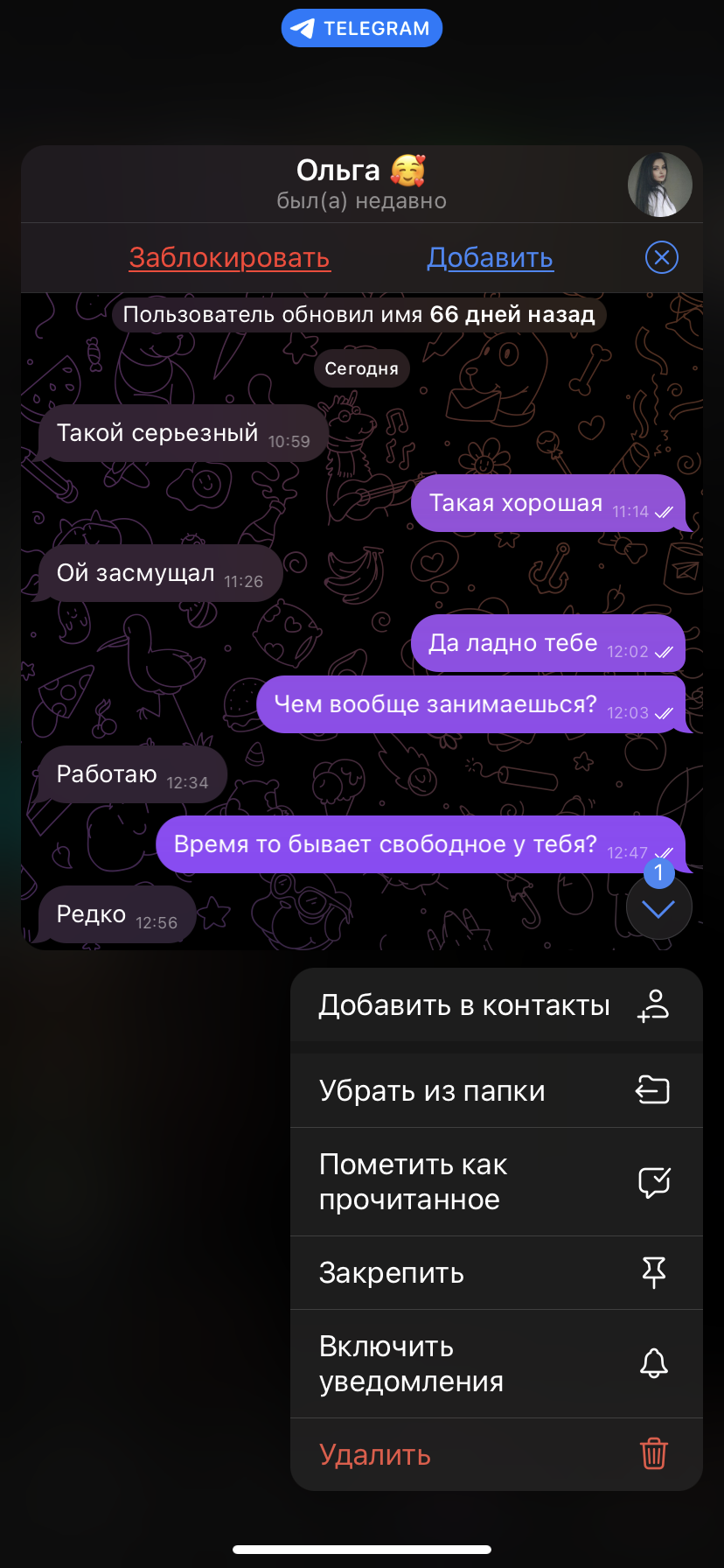Кстати заметил момент, некоторые тянки почти сразу читают телегу, другие же могут даже через сколько-то дней прочитать или вовсе проигнорировать. Почему так? Им все-таки нравятся сообщения анонимов? С вк же ситуация другая - даже в онлайн может не заходить после отправки сообщения, то есть явно уведомления выключены.