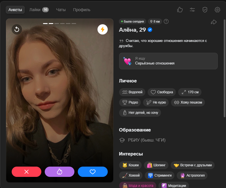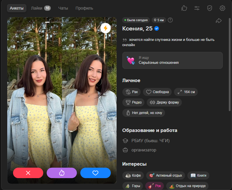 Вчера листал пока не пошли анкеты из пригорода. Сегодня анкеты из пригорода пошли почти сразу, может через сто анкет. Сколько ждать чтобы опять всех начало показывать? Думал они пофиксили эту поебень.