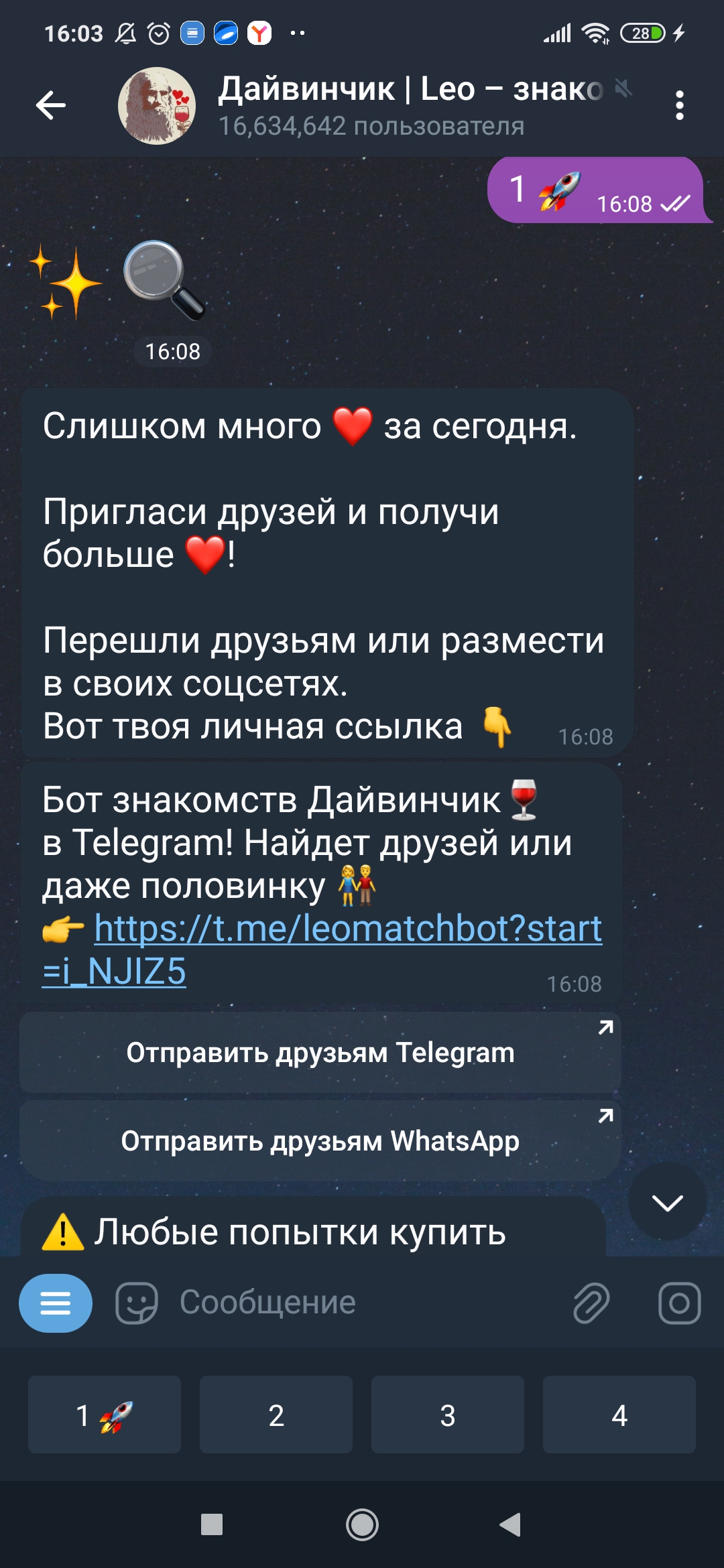 >>10366867 Не думаю, что у обычного бота в телеге есть алгоритмы какие-то. Есть только теневой бан, когда твою анкету просто не показывают, соответственно и взаимных нет. Не этот случай, так как лайки были.