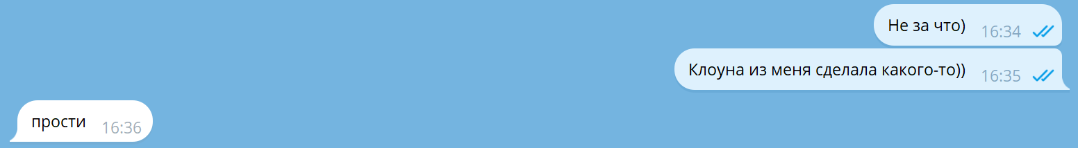 И да, кто-то из анонов мне писал что не надо извиняться перед ней, оправдываться и тд)) Ни разу от меня не было в ее сторону слов "прости", "извини", "я виноват" и тому подобного) а вот от нее было буквально сегодня) Хоть в чем-то я не прогнулся)))