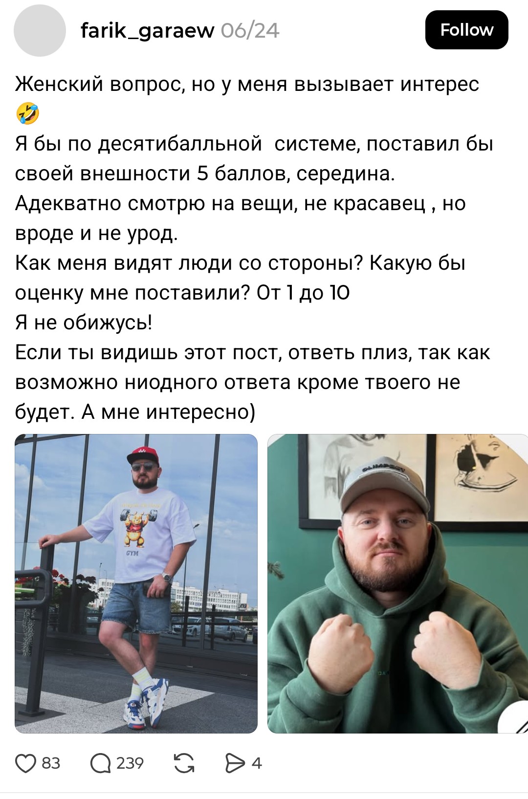 >>10449608 Рост есть, но тяжело трезвым такое делать, чтобы просто подходить к работницам, никогда так не делал, максимум с официантками разговаривал в баре. Но надо будет попробовать. >>10449625 Ну не прям идентичный, подчеркнул черты похожие приблизительно. Рост к тому же 187. А в треде своя атмосфера и собственно без тянки, сексов, иначе бы действительно здесь не находился. а ты точно тян?