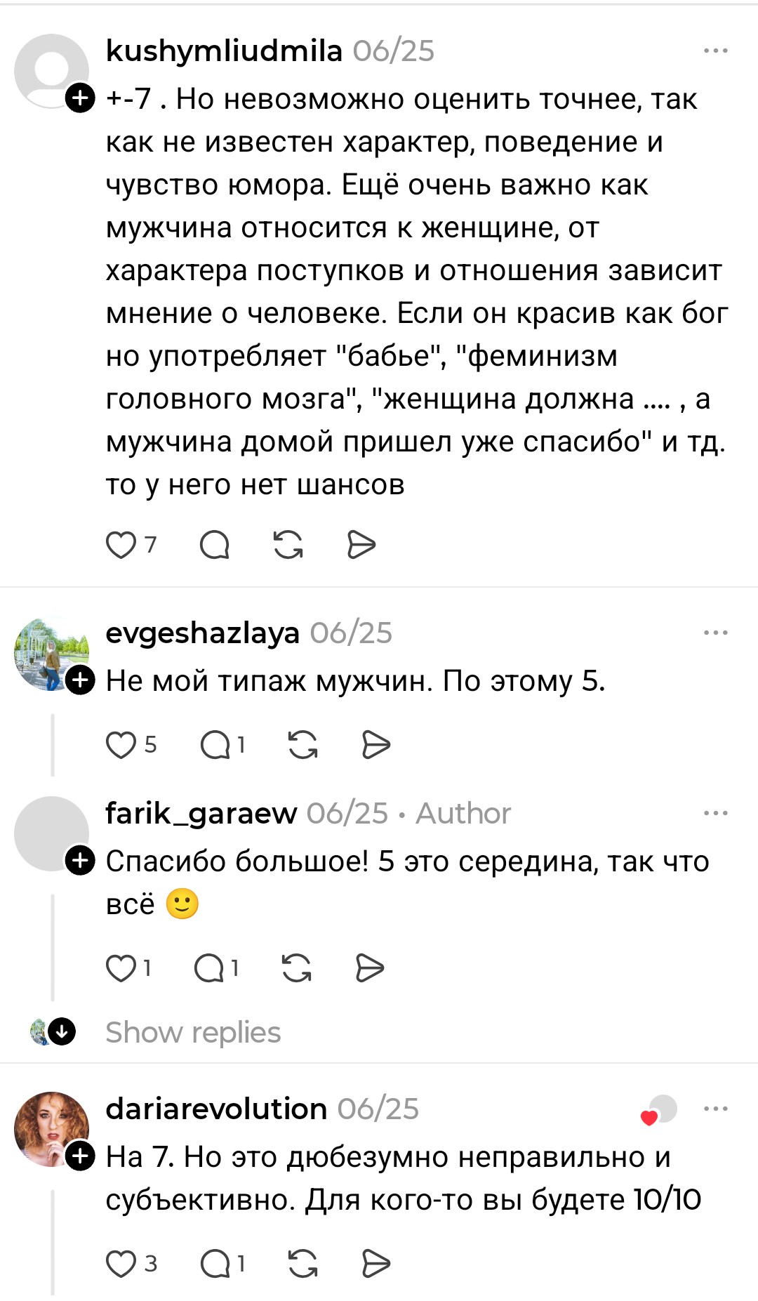 >>10449119 Чтобы одобрить этого чмоню, зависящего от чужого мнения, очевидно. В реальности ни одна бы из них не дала ему в жизни и оценила бы как 0/10.
