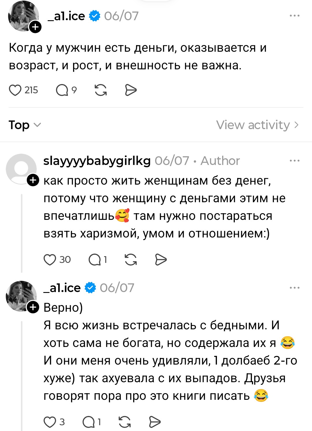 Как же деньги не важны, поэтому у пикрил анкеты на баду - 200+ взаимок за 5 дней. Литералли можно быть почти скуфом, но на БНВ и менять тянок как перчатки.