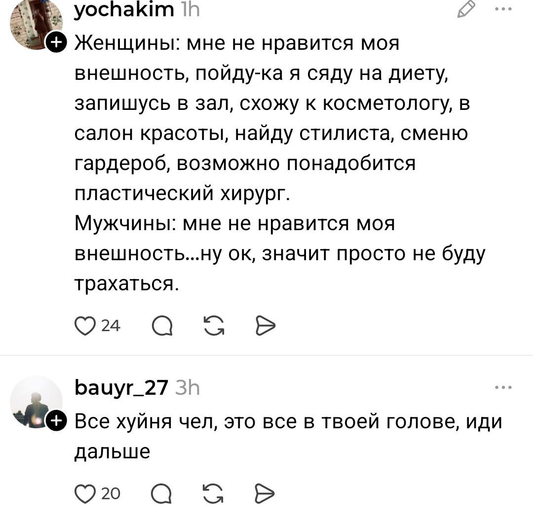 А если ты всрат и убог, то ментальная гимнастика, а-ля "я красавчик" не сработает.