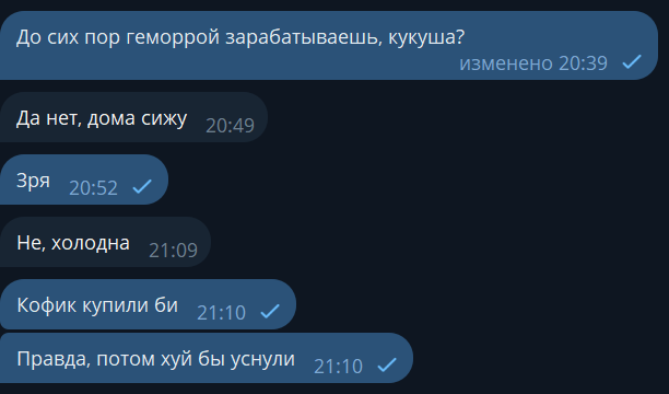 Он хуйню пишет, я с тебя не кормлюсь, не верь ему. Ты все таки старше поколение, твоя возрастная категория еще ходит в разные социальные места и не так за компом сидят.