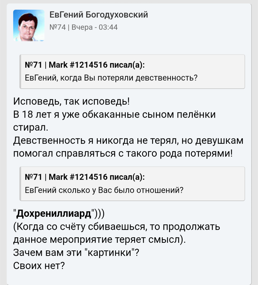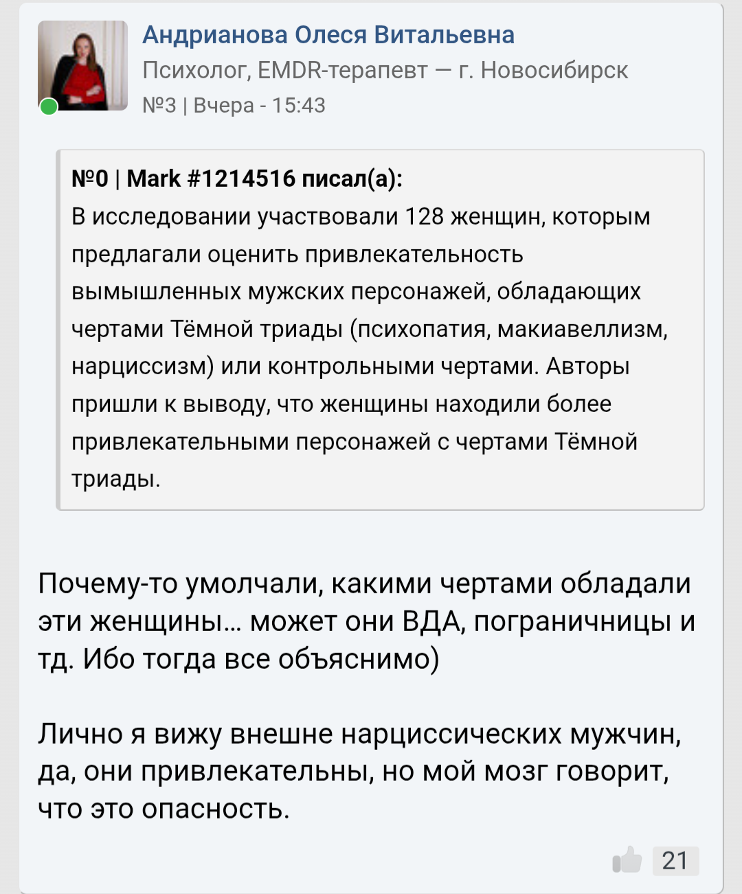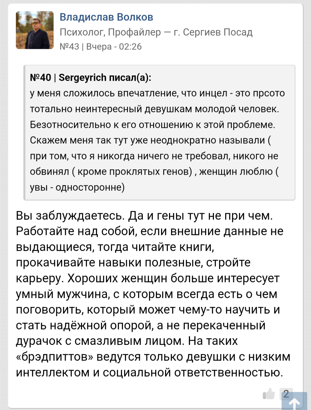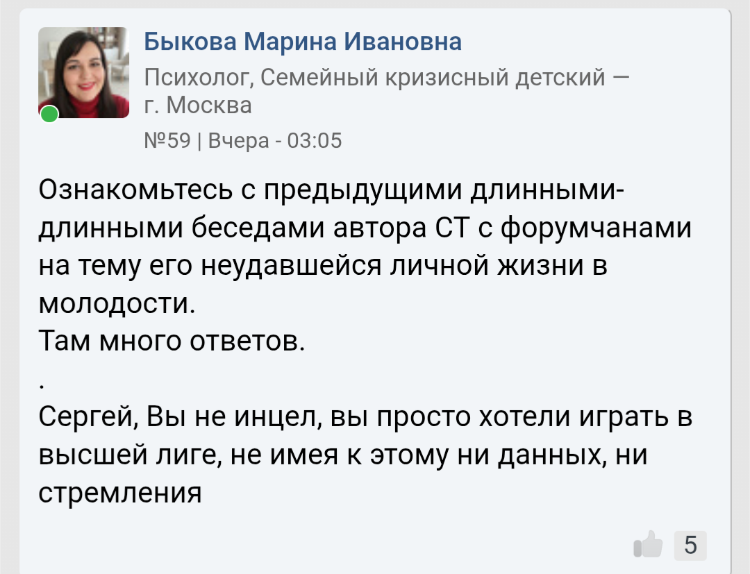 Чтобы не видеть как всрато на него реагируют бабы это реально надо иметь нулевой эмоци-анальный интеллект и в жизни с живой женщиной не поговорить