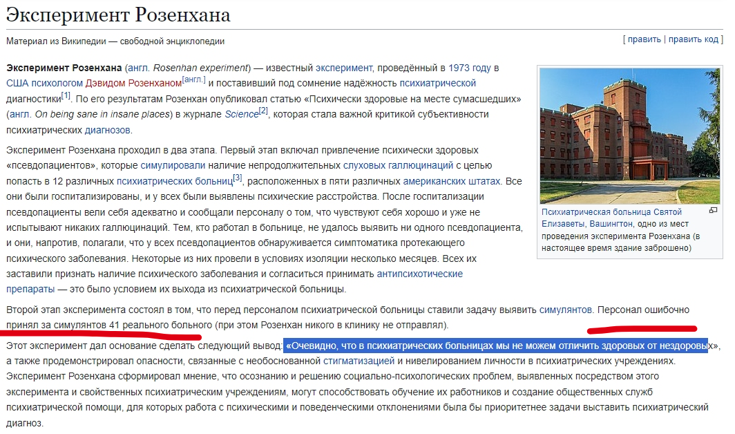 >>10469182 Че ты вцепился то в священный символ > «Священным символом психиатрии» и фиктивным заболеванием, по утверждению Саса, является шизофрения. Для того чтобы говорить о действительном заболевании, эта сущность должна каким-либо образом допускать возможность использования в отношении неё научных подходов, измерений и исследований. Типичный диагноз это далеко не шиза, а всякий кальчик типа тревожки и депрессии. Ничего из этого не является болезнями в медицинском смысле, как и любое другое (((психичечкое заболевание))). И то и другое - нормальная реакция на (негативный) жизненный опыт. Не зря же (((психические заболевания))) в основном у нищуков Единственное лечение - избавиться от негативного жизненного опыта в жизни и получать позитивный. Все. Других способов нет. Магические гойблетки не помогут