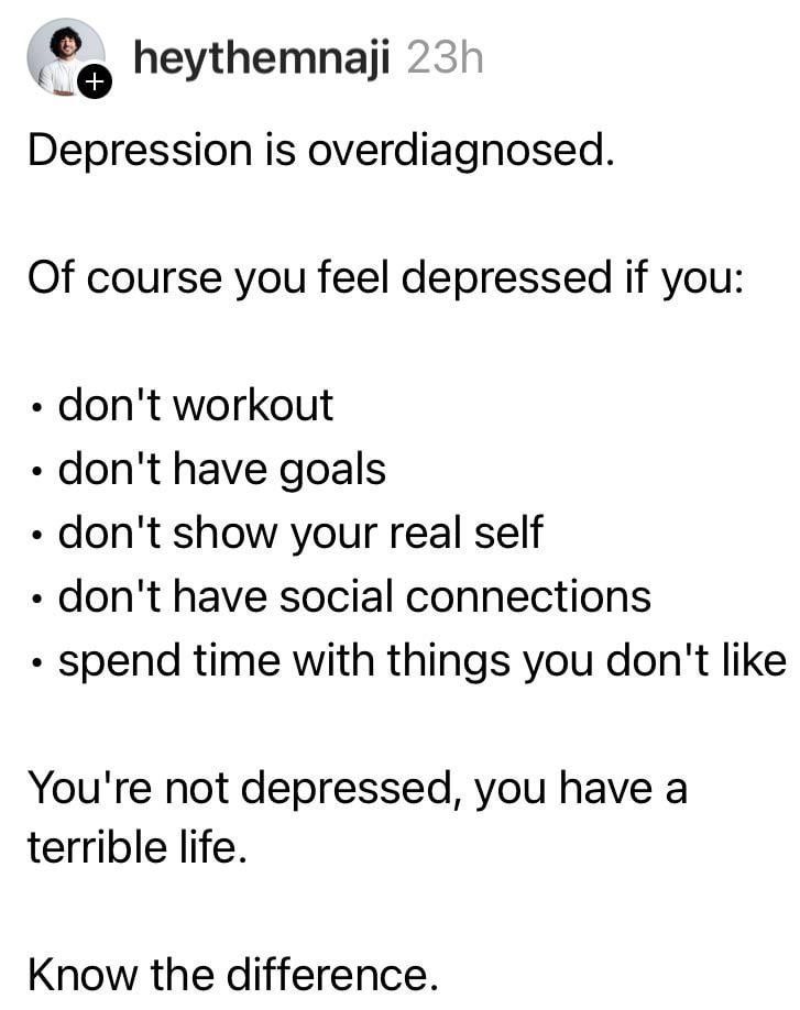 (((Психических заболеваний))) не существует. Существование ни одного из них не доказано. Зато известно, что они чаще всего у нищуков. На самом деле (((психические заболевания))) это нормальная реакция на типичный жизненный опыт нищука инцела. Единственное лечение это заиметь нормальную жизнь