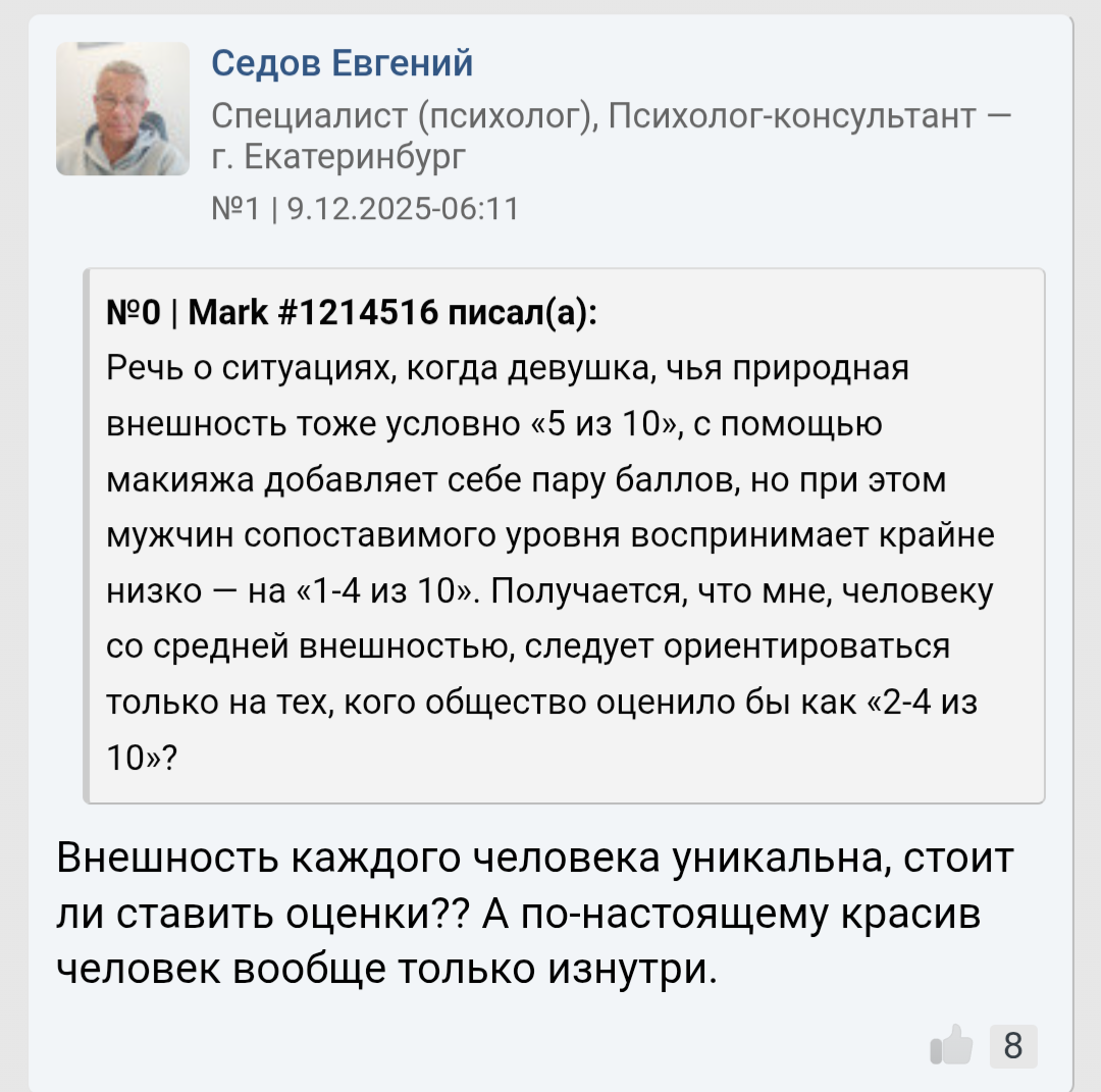 >>10470642 >бало недостаточно привлекательное ебало недостаточное для звания красавца,но достаточное для преодоления порога всратости и зачисления в группу нормальных. >Чёрт, да я тут сижу уже 2 года подряд без надежды на изменения. ну это не доказывает что дело в ебале или росте на самом деле. Ты из за ментальных проблем здесь мог бы сидеть что и делаешь как мы поглядим. Короче чел, тебе расписали что сани твои не поедут, у тебя перекос, инженерно взгляни на свою жизнь и пойми что у тебя есть завал и дисбаланс каких то стат до уровня недостаточности(ебало и рост с доходом эту фазу смогли преодолеть) Если б комплексно была здравая сборка то она бы работала. А твое сидение на дваче уже 2 года в этом треде это и подтверждает, что социалка все же завалена к хуям как и все из нее вытекающее. Нам то похуй, хоть ножовкой себе ухо пили чтоб ка у эльфа были, но как высокоморальный человек я должен для спокойной совести отговорить тебя от ненужных операций, сопряженными с высоким риском осложнений. Тем боле что мы методом исключения выяснили что это один хуй не поможет. Это эффектно, но не эффективно, чувствуешь разницу. Суть то не красавцем стать, а телку найти как я понял. И одно из другого нихуя не вытекает, система сложнее работает, тем более есть куча типов которые смогли и без нее ,а значит это не ультрабаза, раз есть альтернатива.